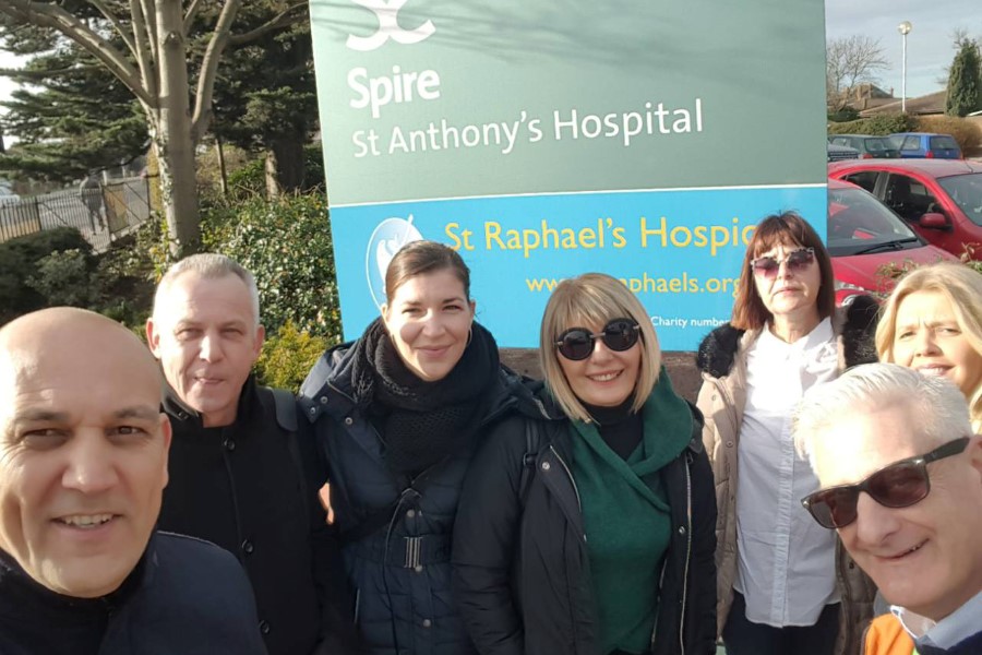 Članice budućega mobilnoga palijativnog tima, viša medicinska sestra Marija Šiljeg i spec. internist dr. Antonija Šušnjar, s ravnateljem Doma zdravlja Metković Mihovilom Štimcem, posjetile su hospicije St Raphael's Hospice, Royal Trinity Hospice, Ellenor Hospice, centar za oboljele od raka Maggie's Cancer Care Center, bolnice Royal Marsden Hospital i St Mary's Hospital gdje je Alexander Fleming otkrio penicilin te su sudjelovali na edukativnim predavanjima radnika u palijativnoj skrbi. Posjete navedenim institucijama i edukacije organizirao je profesor pri Imperial Collegeu, dr. sc. Salman Rawaf, direktor suradnog centra Svjetske zdravstvene organizacije.