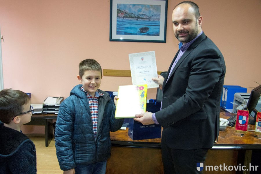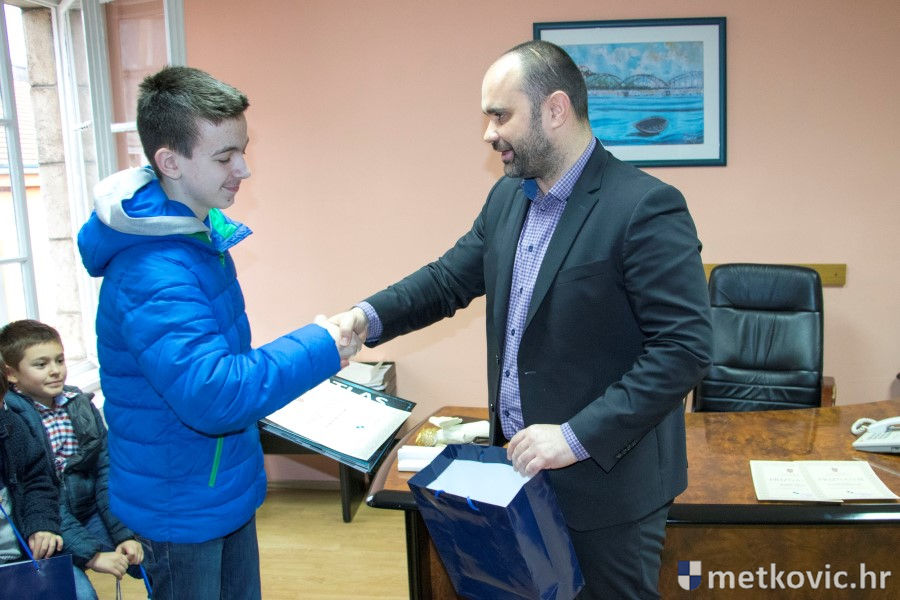 23.2.2018. - Šahiste OŠ Stjepana Radića, koji su na prošli tjedan u Splitu na Regionalnom natjecanju osvojili treće mjesto, danas je u svome uredu primio gradonačelnik Dalibor Milan te njima i njihovim mentorima uručio priznanja i prigodne darove.