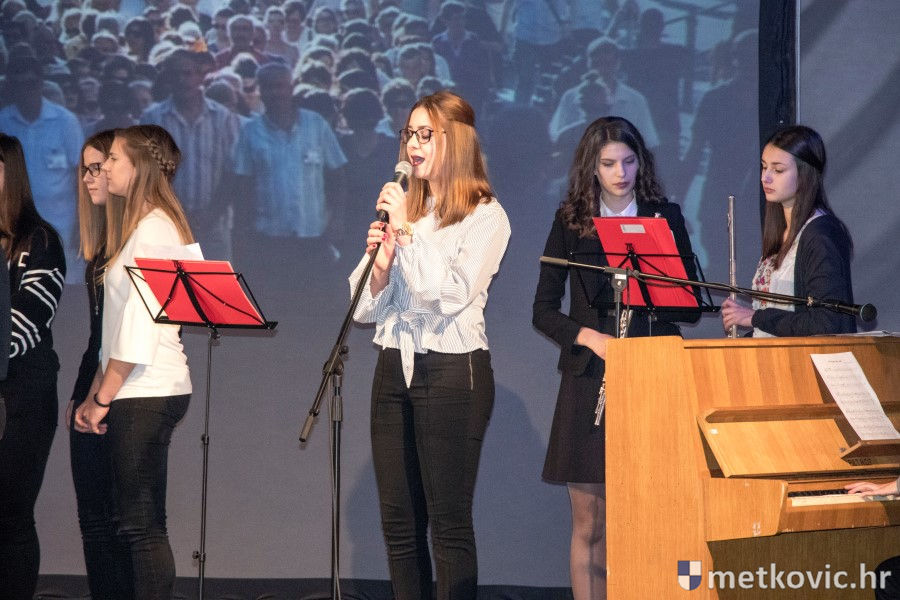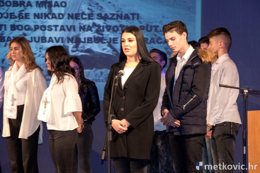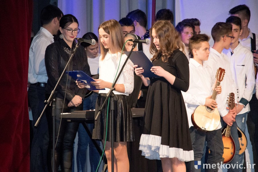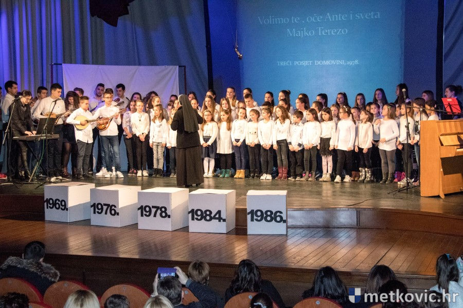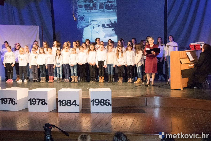 1.3.2018. - Završna priredba manifestacije Dani oca Ante Gabrića sinoć je održana u potpuno ispunjenoj kazališnoj dvorani GKS-a Metković. Na njoj su sudjelovali djeca i učenici Dječjega vrtića Metković, osnovnih škola Stjepana Radića i don Mihovila Pavlinovića te Srednje škole i Gimnazije Metković. U glazbenome dijelu, praćeni mladim glazbenicima, nastupili su Dječji zbor župe sv. Nikole i Zbor župe sv. Ilije te Mješovita klapa Sveti Nikola i gospođa Nada Marušić.