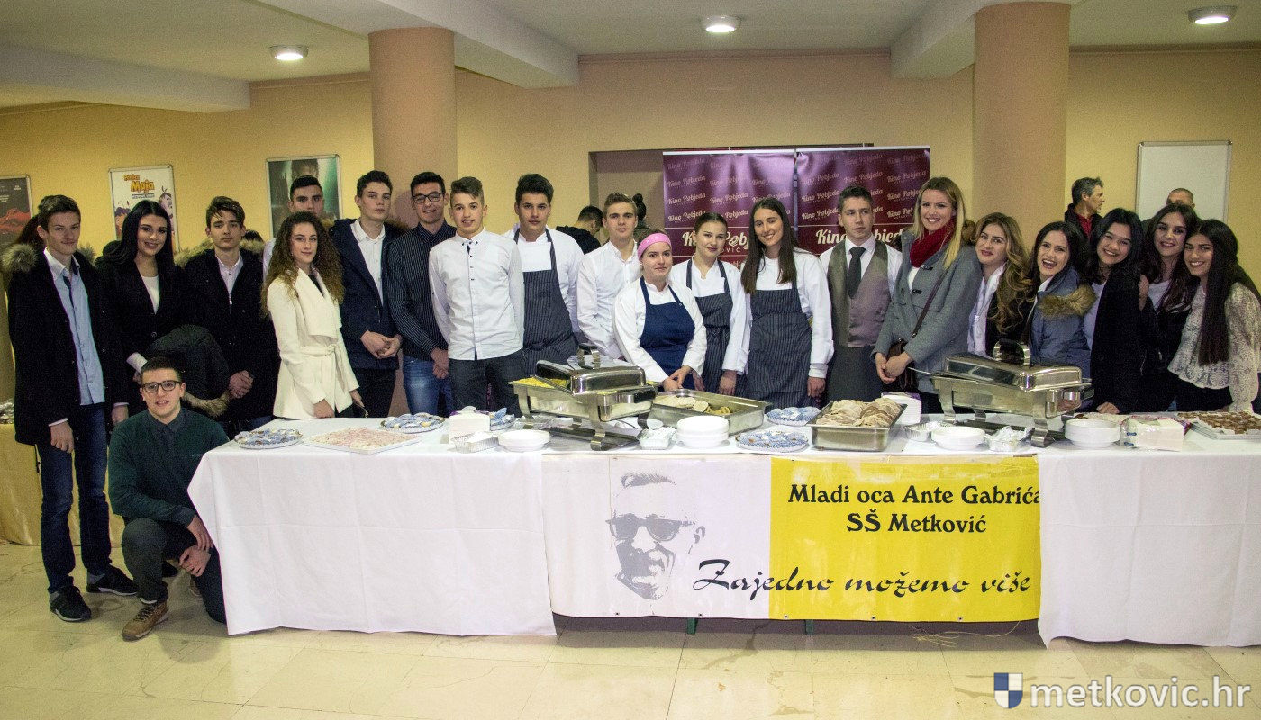 Za indijski štih pobrinule su se mlade učenice SŠ Metković odjevene u sarije, dok su njihove kolege pripremile razne slastice i dva rižota – indijski s piletinom, povrćem i pripadajućim začinima te naš domaći s teletinom. Indijski je bio jako dobar, ali naš nam se činio savršenim. Dokaz je da se za čas razgrabio. U predvorju je bila postavljena kutija za donacije pa će prikupljeni novac Udruga SŠ Metković Mladi oca Ante Gabrića uputiti u Bengalski Maria Poli za obnovu jedne škole.