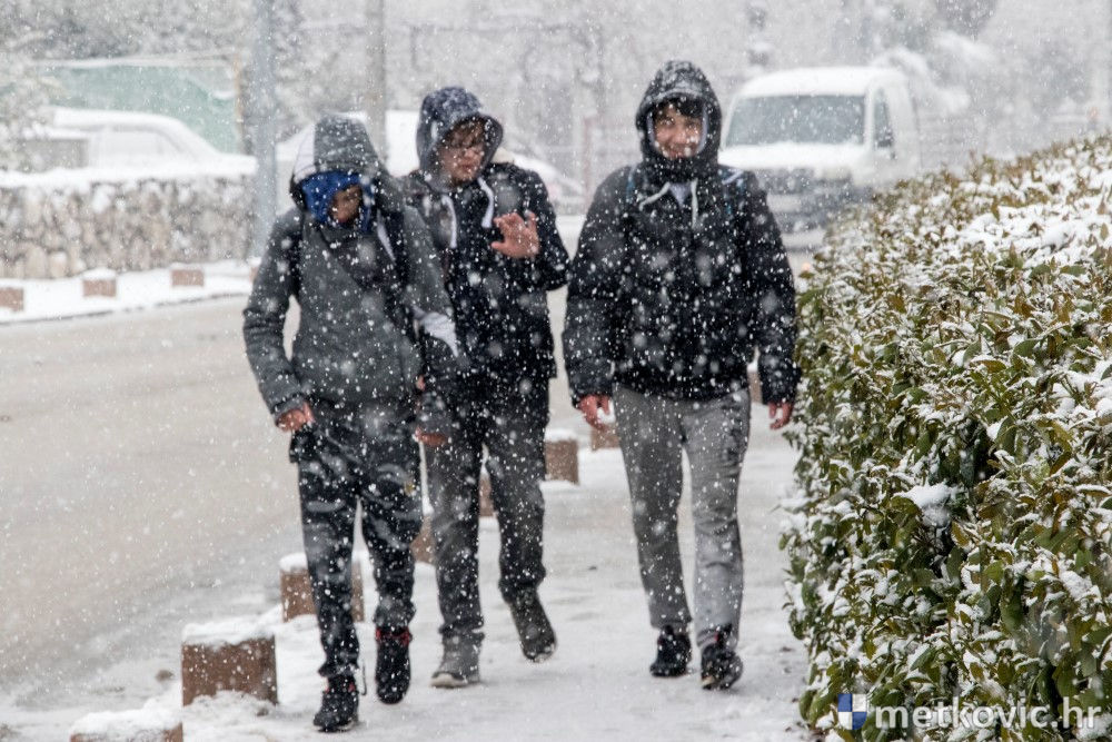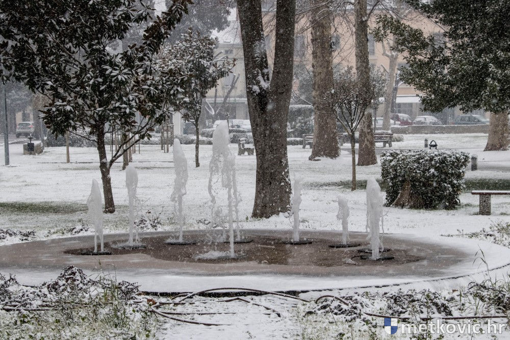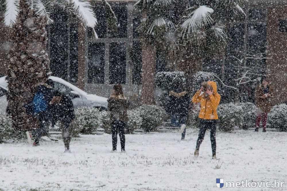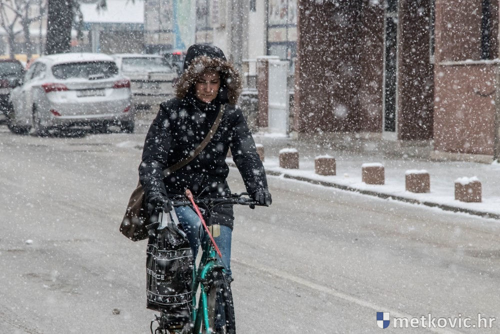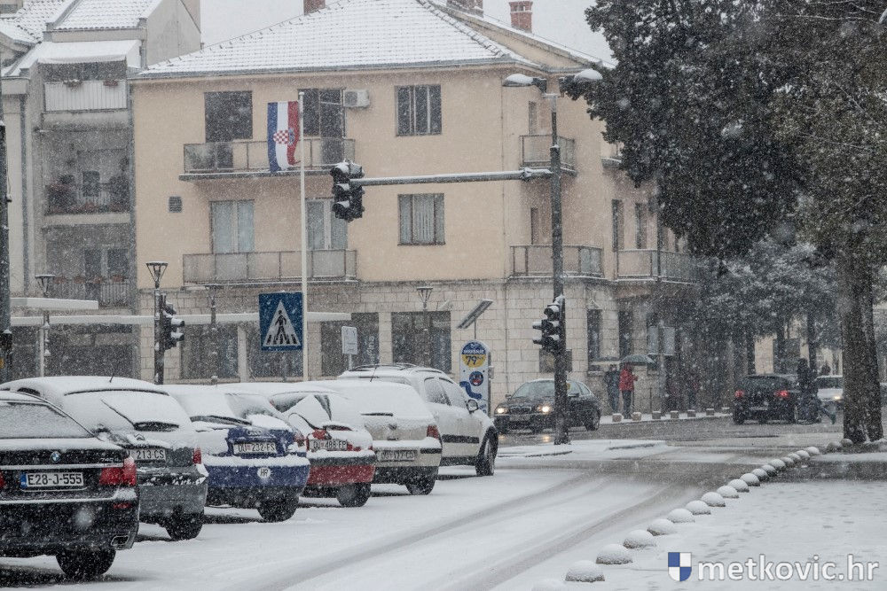 Metković, 1.3.2018. - Premda smo očekivali zatopljenje i kišu, ožujak nas je prvoga dana iznenadio snijegom. Ništa čudno za taj mjesec koji ime vuče od riječi lažnjak, no sutra je prema svim prognozama toplije i kiša.