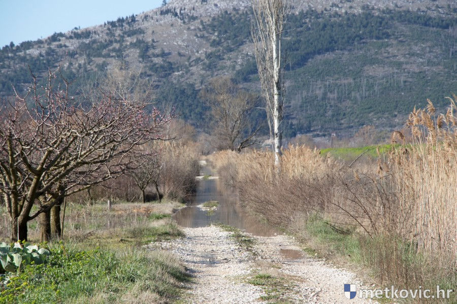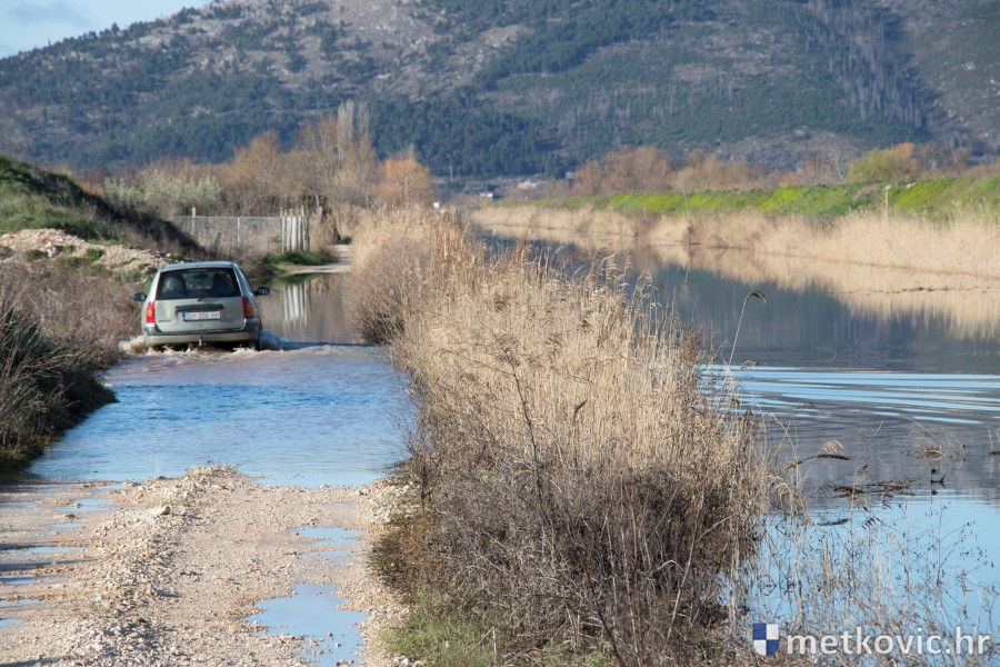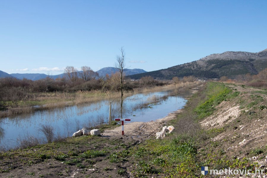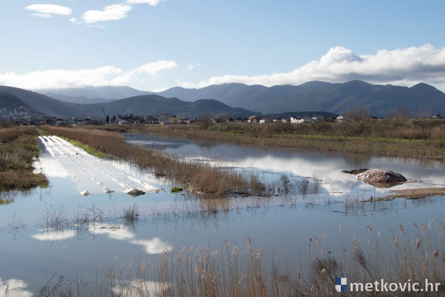 8.3.2018. - Ovih dana su, naročito na društvenim mrežama, zamijećene reakcije stanovnika desne strane Metkovića na porast voda unutar branjenoga područja. To se naročito odnosi na poljoprivredne površine koje su pod vodom. Stoga smo jutros obišli nasip za obranu od poplave u blizini Puta Narone te na području Struge i Prokop, dok na Duvrat nismo išli jer smo dobili informaciju da je pristupni put dijelom pod vodom.
