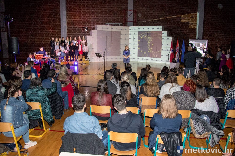 Da gostima boravak u Metkoviću ostane u nezaboravnom sjećanju potrudili su se metkovski gimnazijalci i njihovi profesori. Izveli su dojmljiv glazbeni program, tijekom kojega su pjevali poznate pjesme iz gostujućih država i to na njihovu jeziku. Neke je pjevao školski zbor, a neke solisti u pratnji učeničkoga sastava. Portugalci su sigurno bili oduševljeni da se u Metkoviću pjeva fado, a Turci su bili iznenađeni kako je školski zbor otpjevao jednu njihovu lijepu pjesmu. Naravno i svi su drugi ostavili izvrstan dojam pa smo i mi bili iznenađeni kakvoćom izvedaba. Nakon priredbe u školi je za sve upriličen domjenak.