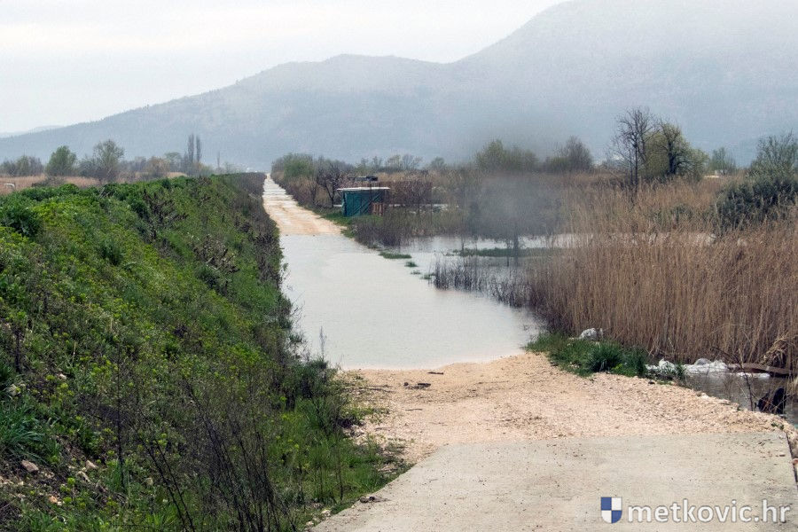 21.3.2018. - Prvi put otkako je izgrađen, sustav obrane od poplava desne strane Metkovića u aktivnoj je funkciji. Jutros smo na terenu utvrdili da su vanjske vode najmanje metar više od unutrašnjih, čemu je svakako pridonijela i Crpna stanica na Duvratu, koja razinu vode u glavnome kanalu Jerkovac drži na takvoj visini da u nj mogu dotjecati vode iz manjih kanala.