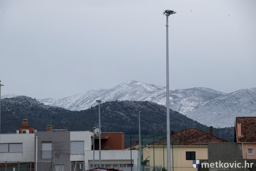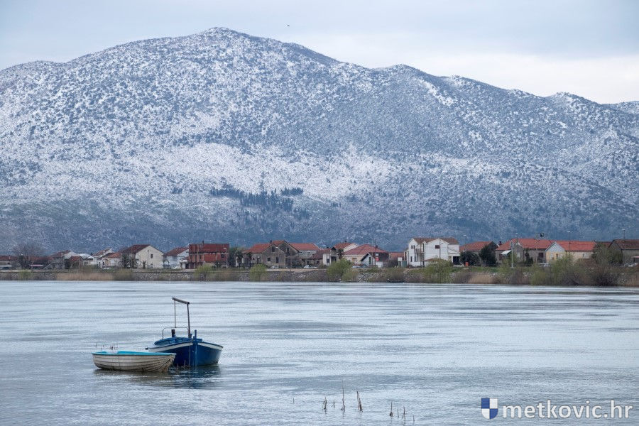 Metković, 23.3.2018. - Jutros nas je uz lagani sjeveroistočnjak i oko 3 ⁰C dočekao snijeg na okolnim brdima. Bijele se masivi Žabe i Rujnice te brda u Hercegovini. Na svu sreću, Neretva je pod kontrolom.
