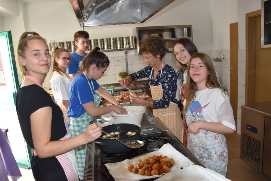 U drugom dijelu prostorije pravio se razdjeljak na sredini glave i plele su se pletenice. Dok su se jedni igrali, drugi pleli pletenice vrijedne ruke mijesile su fritule na starinski način – posne fritule kakve su se pravile i na Badnjak, ali i one malo jednostavnije koje se prakticiraju u novije vrijeme i iziskuju manje vremena za pripremu. Djeca su stjecala dragocjena iskustva i spoznaje neposrednim doživljajem načina života naših starih jačajući tako svoj zavičajni identitet.