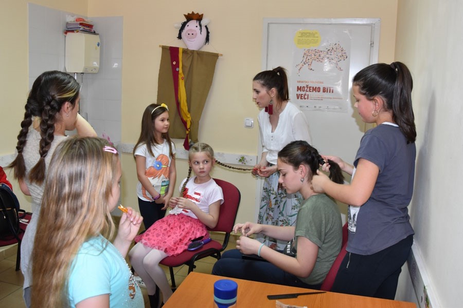 Prvo su se prezentacijama Žensko oglavlje nekad i danas i Igre, brojalice i zagonetke upoznali s osnovnim značajkama tradicijskih frizura, njegom kose, priborom za izvedbu frizura, raznim vjerovanjima vezanim za kosu te s glavnim obilježjima i pravilima starinskih igara. Na kraju prezentacijskoga dijela zaigrao se i kviz o poznavanju igara užega zavičaja. Potom je uslijedio praktični dio; u jednom dijelu prostorije zaigrale su se stare igre, preskakao se konop, brojale razne brojalice… Svatko se prisjetio poneke igre, brojalice ili zagonetke o kojima su im pričali njegovi baka, djed ili stariji susjedi.