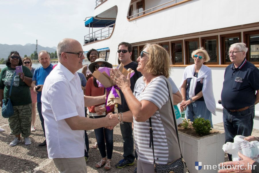 Goste je na Maloj rivi dočekao gradonačelnik Dalibor Milan, direktorica Turističkoga ureda TZ grada Metkovića i Magdalena Medar Ujdur i Dragan Tolić uz Turističkoga obrta Neretva info. Vedran Dragovići i osoblje Restorana Lopoč uz glazbu su ih ponudili domaćom kapljicom i fritulama.