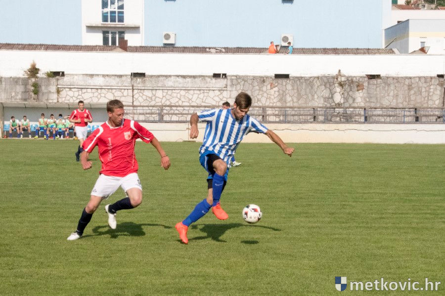 Od samoga početka igralo se na gostujućoj strani pa je dominacija na terenu već u 8. minuti urodila plodom, kada se u gužvi pred Slavenovim vratima snašao Frane Jerković i svoje doveo u vodstvo od 1:0. Minutu zatim dobro se pred gostujućim vratima snalazi Duje Batinović, koji preciznim udarce povisuje na 2:0. Golovi su nastavili padati istim ritmom. U 24. minuti Tomas pogađa za 3:0, a minutu potom Ante Batinović postiže konačan rezultat na poluvremenu – 4:0.