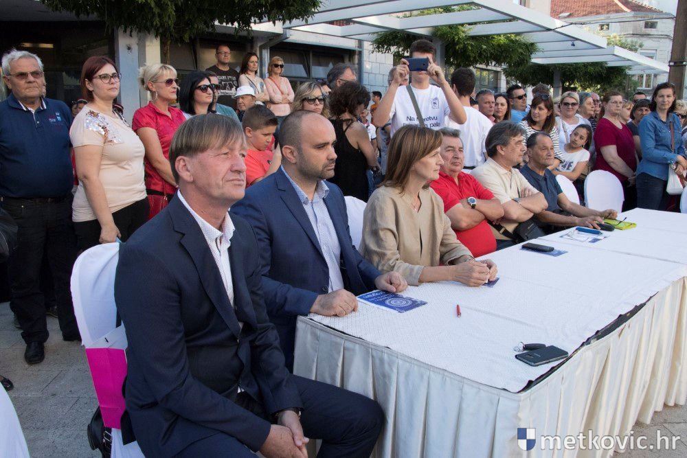 Okupljeno mnoštvo na Trgu je pozdravio predsjednik KUD-a Metković Mato Obrvan, a potom im se prigodnim riječima uime župana Dobroslavića obratila Žaklina Marević. Pozdravivši sve sudionike Smotre, čin otvaranja obavio je gradonačelnik Milan, koji je tom prigodom rekao da je Grad Metković i do sada potpomagao Smotru te da će to činiti i u budućnosti.