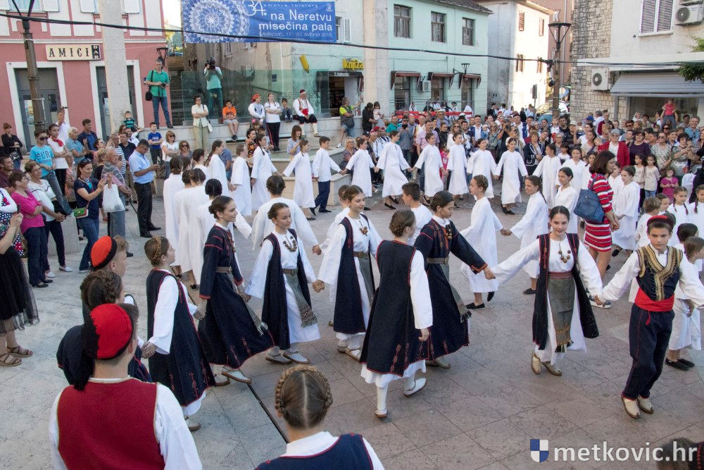 34. Smotra folklora Na Neretvu misečina pala jučer je svečano otvorena na Trgu kralja Tomislava u nazočnosti metkovskoga gradonačelnika Dalibora Mijana, ujedno i izaslanika pokroviteljice Smotre predsjednice Kolinde Grabar Kitarović, potpredsjednika Sabora Bože Petrova, zamjenice župana Žakline Marević te istaknutih hrvatskih folklorista, etnografa i muzikologa Vidoslava Bagura, Ivana Ivančana, Joška Ćalete, Stjepana Sremca, Mojce Piškor i Branke Hajdić.