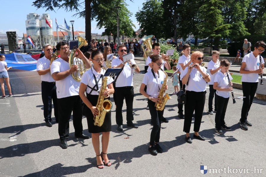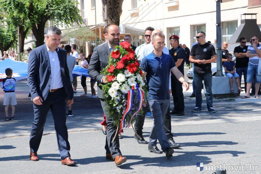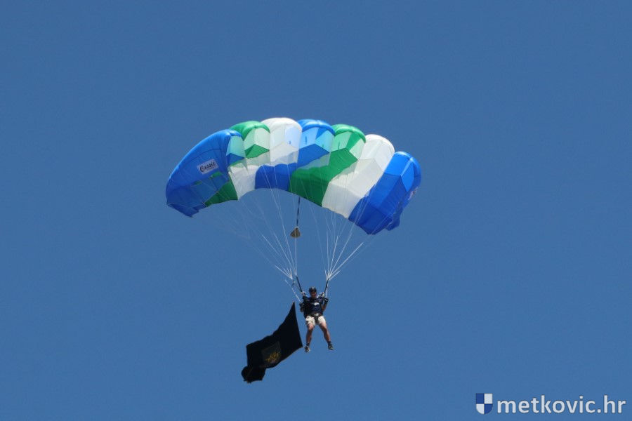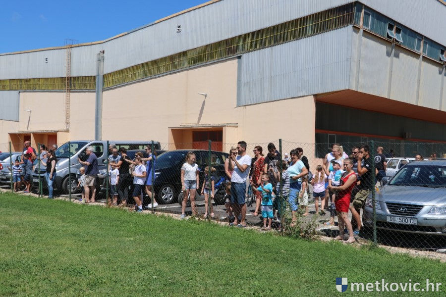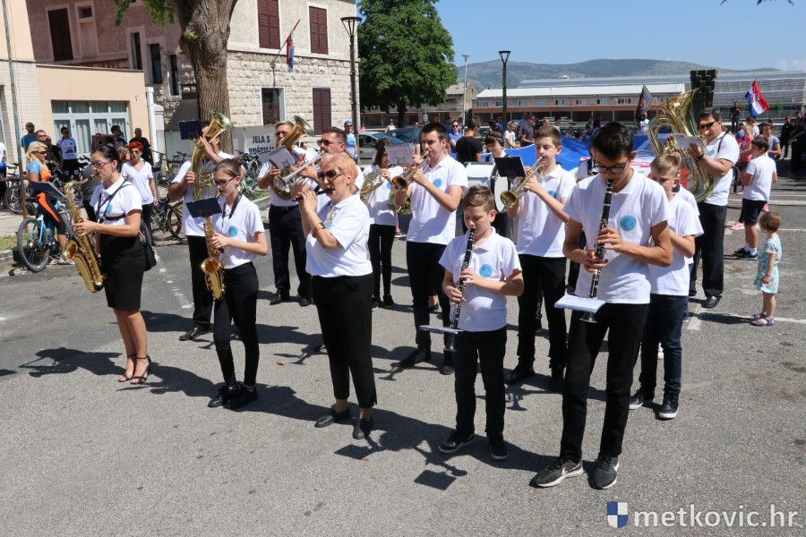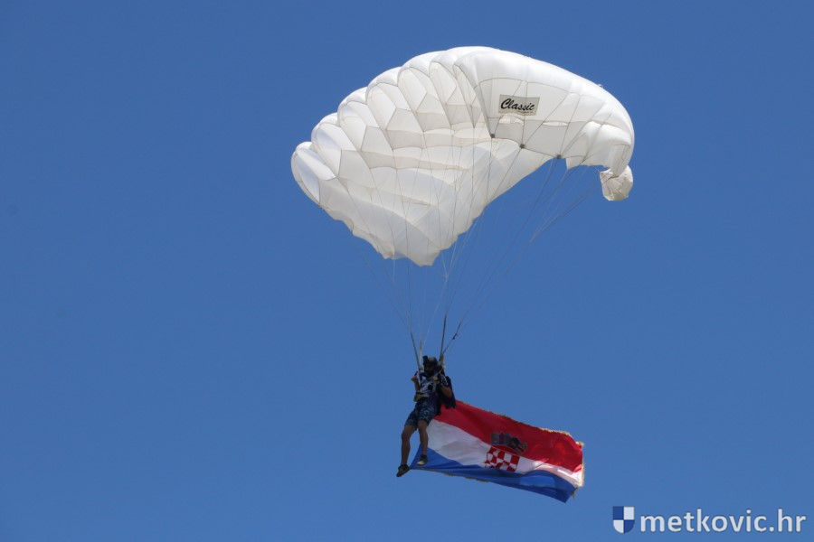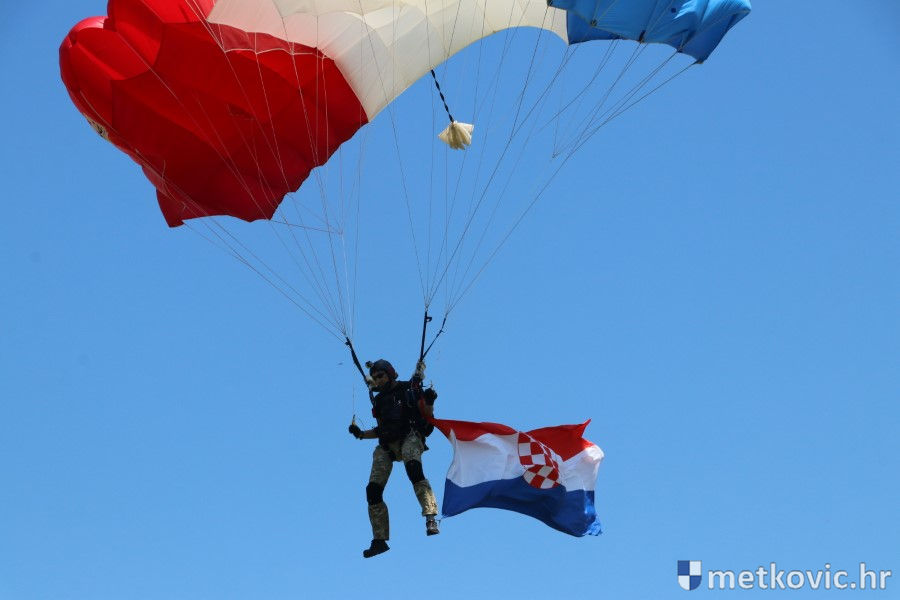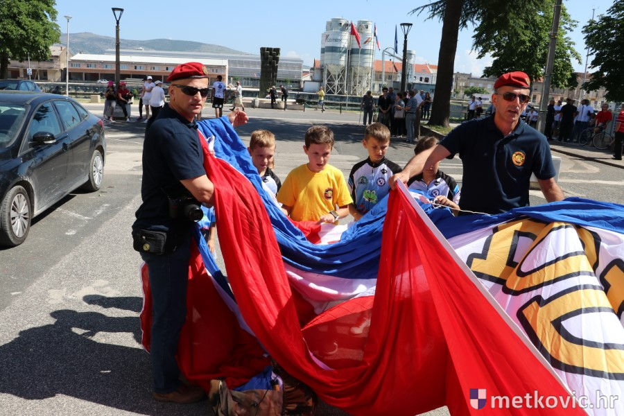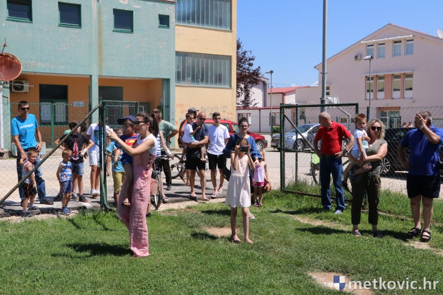 Svečani mimohod sudionika proslave krenuo je s Trga ka Igralištu Iza Vage, na kojemu je desetorica padobranaca iz Aerokluba Sinj izvela atraktivne skokove sa zastavama Republike Hrvatske, gradova Metkovića i Sinja te Udruge veterana IV. gbr. Poslije skokova građani su na pomoćnome nogometnom igralištu mogli razgledati helikopter HRZ-a MI-8, iz kojega su padobranci bili skakali. Naravno, najviše su se tome radovala djeca.