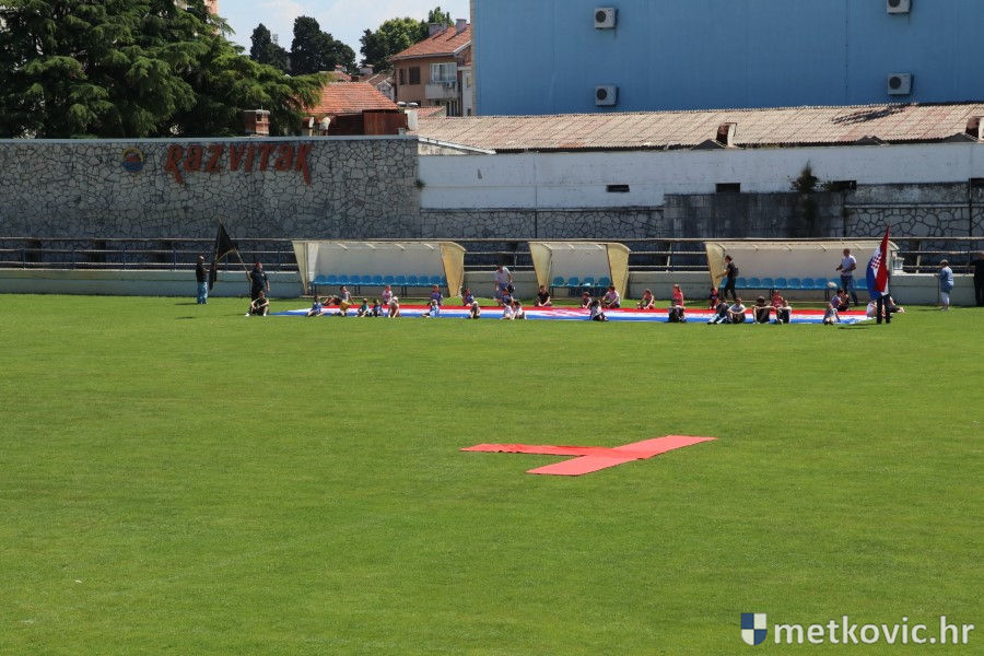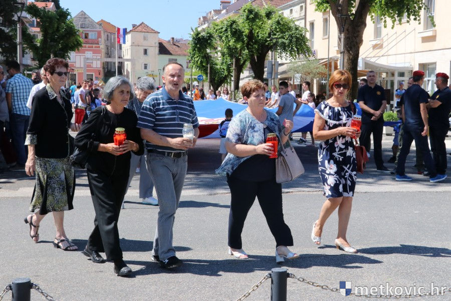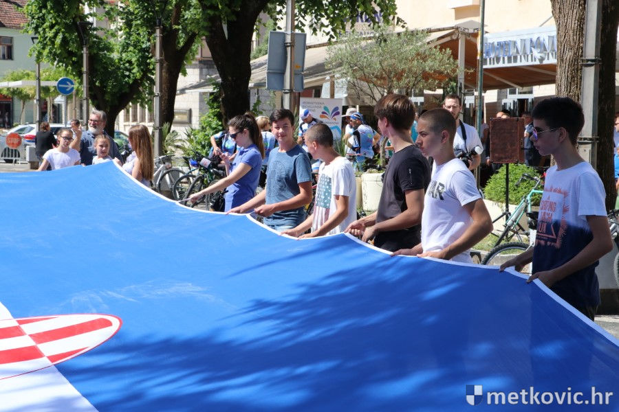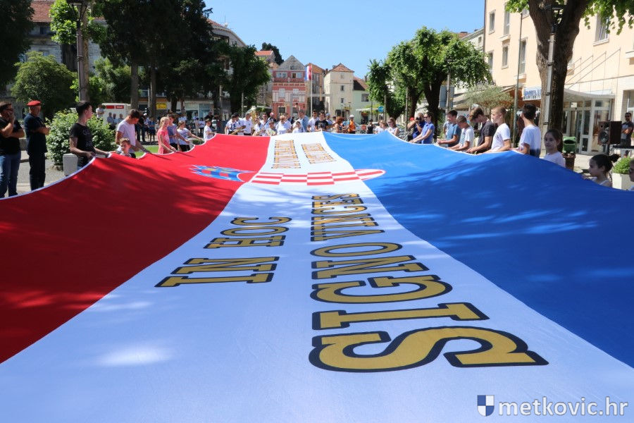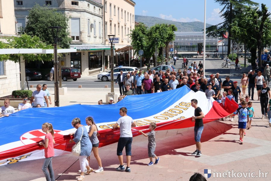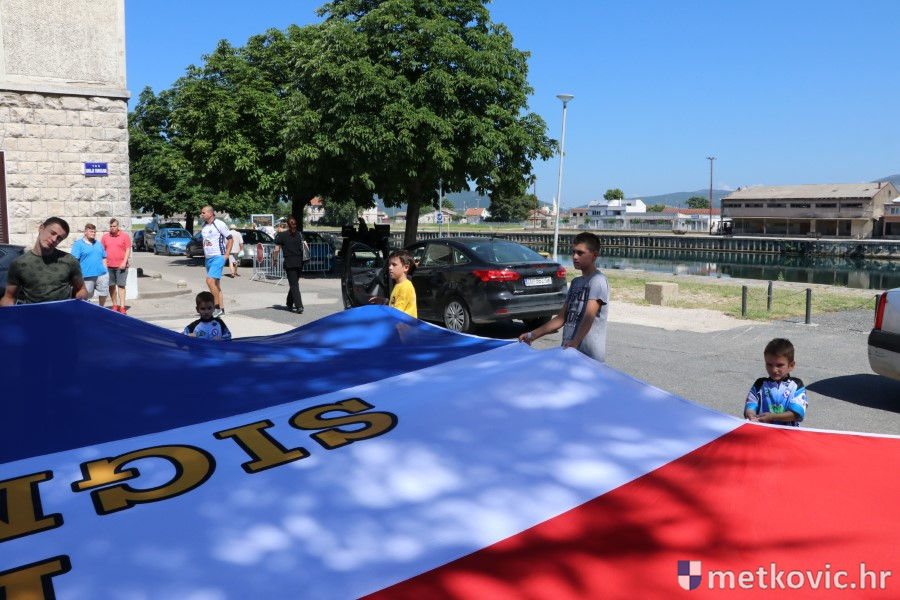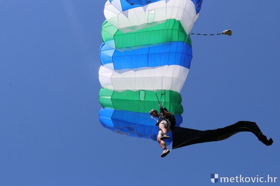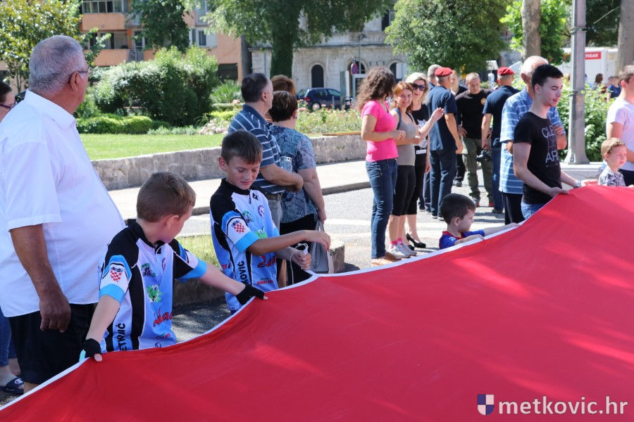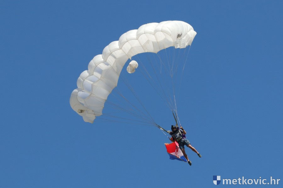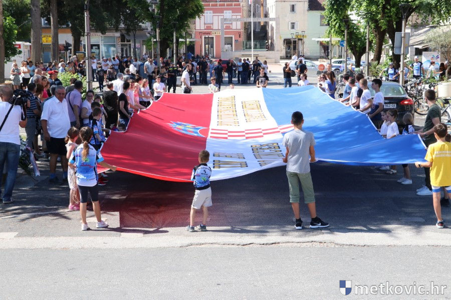 Svečani mimohod sudionika proslave krenuo je s Trga ka Igralištu Iza Vage, na kojemu je desetorica padobranaca iz Aerokluba Sinj izvela atraktivne skokove sa zastavama Republike Hrvatske, gradova Metkovića i Sinja te Udruge veterana IV. gbr. Poslije skokova građani su na pomoćnome nogometnom igralištu mogli razgledati helikopter HRZ-a MI-8, iz kojega su padobranci bili skakali. Naravno, najviše su se tome radovala djeca.