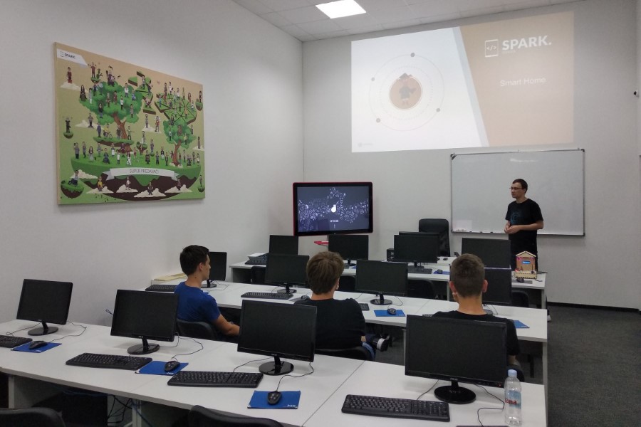 Nakon obilaska NSoft-a i SPARK-a Tomislav Kordić je učenicima održao predavanje o IoT-u (Internet of Things) gdje je demonstrirao kako radi maketa pametne kuće i objasnio cjelokupni proces od ideje do realizacije i samog programiranja komponenti.