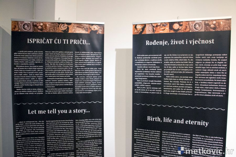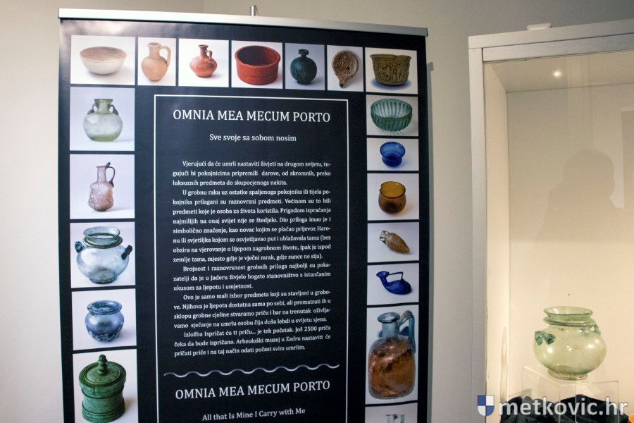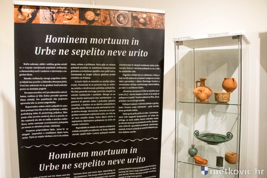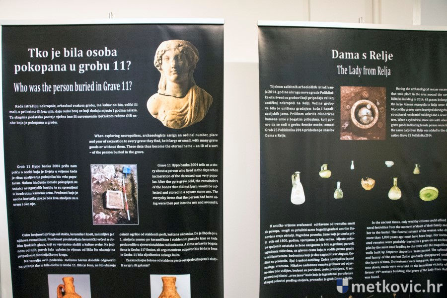 Ravnatelj AM Narona Toni Glučina predstavio je autoricu izložbe Timku Alihodžić, kustosicu Antičkoga odjela Arheološkoga muzeja u Zadru, koja je rekla da je na području antičkoga Jadra otkriveno i istraženo više od dvije tisuće grobova te da je ona sama radila na istraživanju njih 1500.