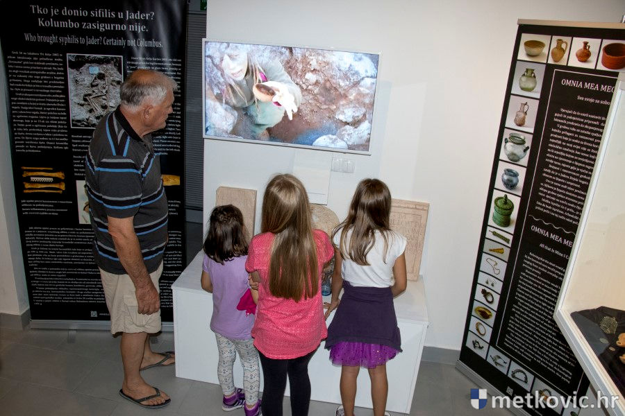 30.6.2018. - Zanimljiva gostujuća izložba Arheološkoga muzeja u Zadru sinoć je otvorena u Arheološkome muzeju Narona u Vidu. Riječ je o nalazima iz nekoliko grobova otkopanih na području antičkoga Jadra, iz kojih nađeni skeleti i predmeti pričaju priču, tj. priče o tome čime se bavila pokopana osoba, kakav je status imala u društvu, od čega je bolovala i sl.