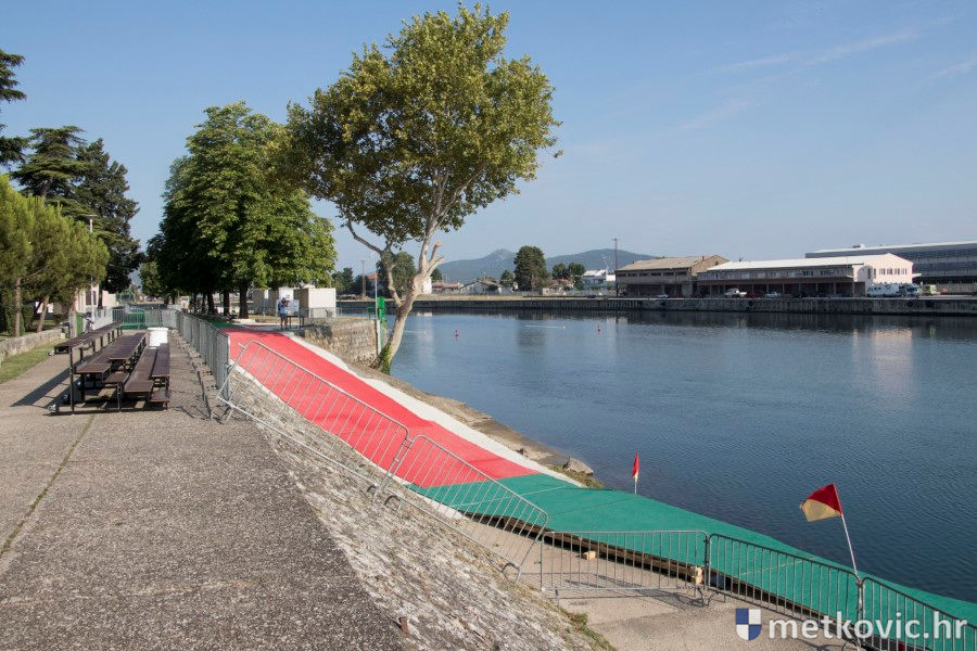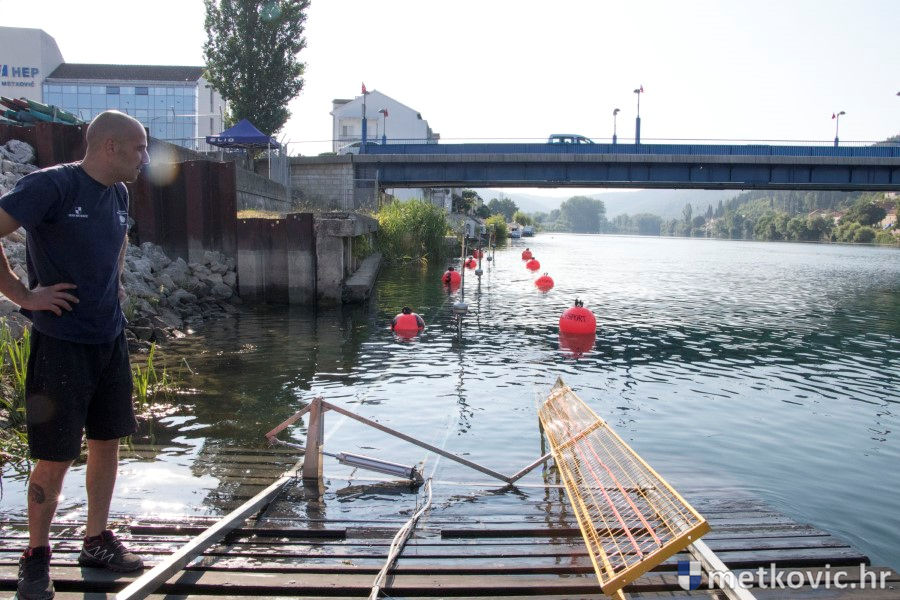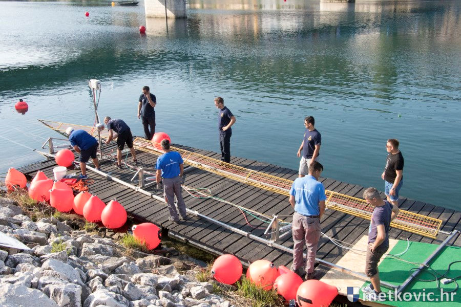 Vidljivo je kako je na lijevoj strani Neretve obala sređena i očišćena od plastičnoga otpada te je postavljena potrebna infrastruktura. Otišli smo i na desnu obalu te zabilježili montažu hidraulične startne naprave koja će omogućiti to da svi veslači krenu istovremeno, a u predvorju GKS-a, gdje je Akreditacijski centar, zatekli smo veslače pri prijavi i preuzimanju startnih brojeva.