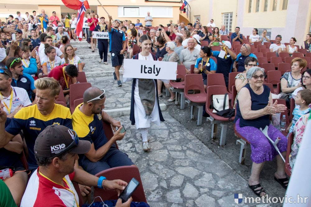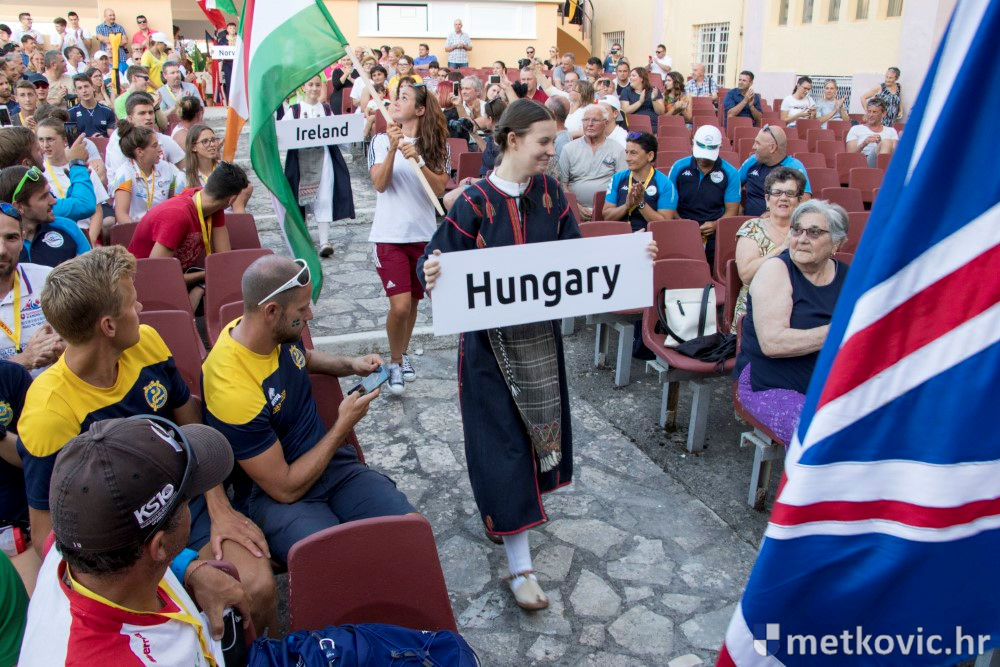 Ceremonija je započela svečanim mimohodom predstavnika zemalja sudionica, koji su koračali sa svojim zastavama. Tijekom intoniranja hrvatske himne Marijo Jurković je u ulozi kneza Domagoja podigao hrvatsku zastavu.