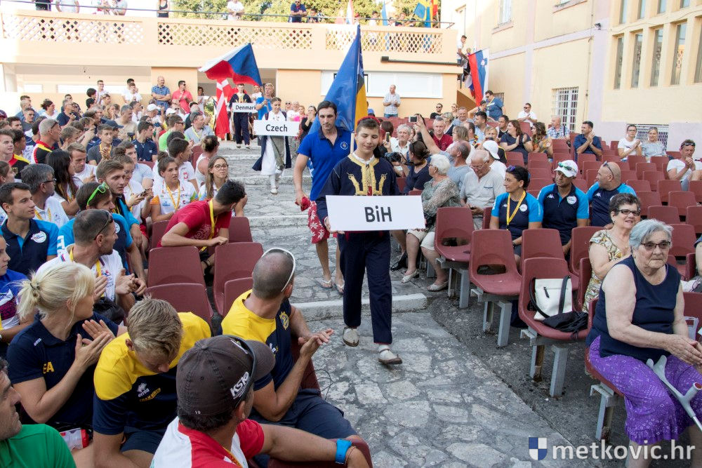 Prigodnim se riječima okupljenima obratila zamjenica župana Žaklina Marević te predsjednik Hrvatskoga kajakaškog saveza Marko Ćurković, koji je rekao da je zadovoljan onim što se učinilo u Metkoviću. Kao posljednji, na pozornicu je izašao predsjednik Europske kajakaške asocijacije Albert Woods. Prema osmijehu na licu očito je da je zadovoljan viđenim. Ovo mu je osmi put da je u Metkoviću jer je tijekom priprema stalno dolazio kako bi utvrdio ide li sve prema planu. Gospodin Woods je pozvao građane da prate utrke u maratonu, koje se sastoje od veslanja i tračanja s čamcem te pokazuju iznimnu izdržljivost sportaša. Nakon što je Prvenstvo proglasio otvorenim, svirana je himna Europske unije i podignuta zastava Europske kajakaške asocijacije.