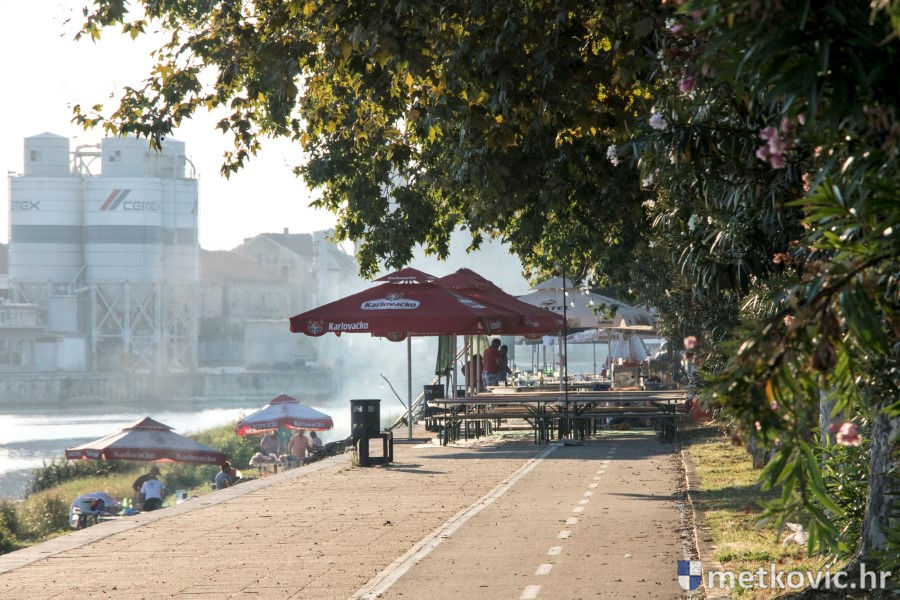 20.7.2018. - Kada smo jutros kvarat do šest, s veselim slavljem zvona sa zvonika crkve sv. Ilije, krenuli u 'inspekciju', u zraku je bilo ugodnih 19 stupnjeva. Uz Neretvu su se već uvelike vrtjeli ražnjevi, a iz improviziranih šatora i autoprikolica počeli su izlaziti pospani trgovci raznim stvarima, od kojih se neke može kupiti samo na 'derneku'.