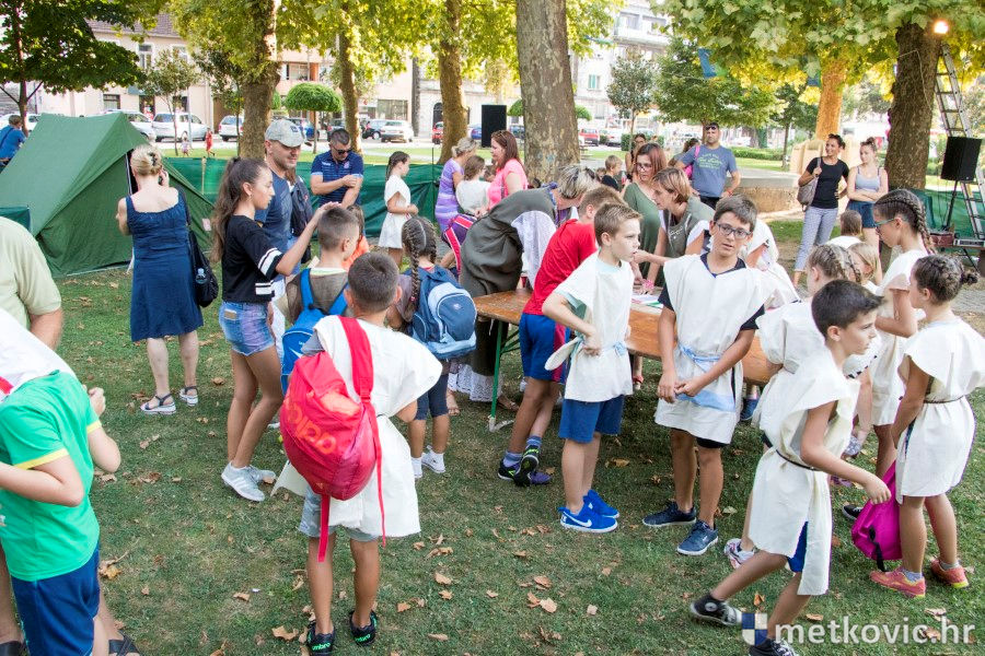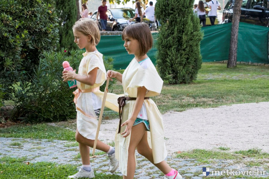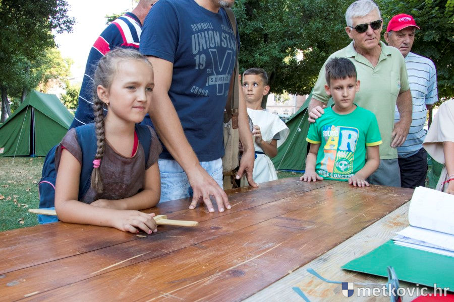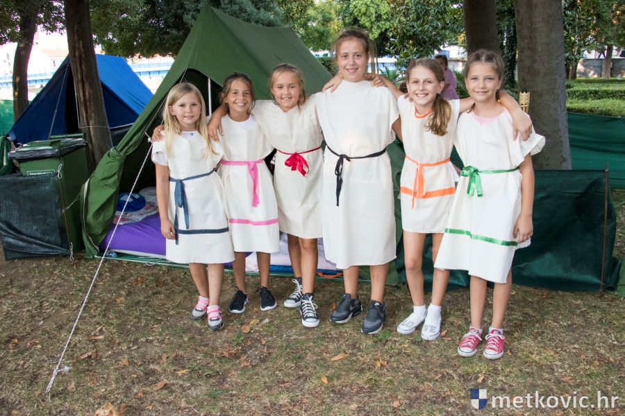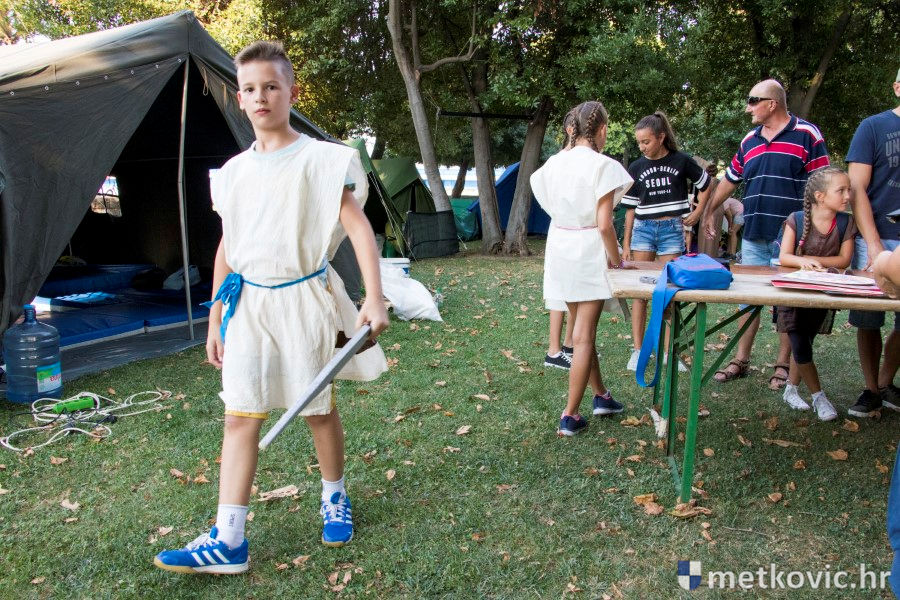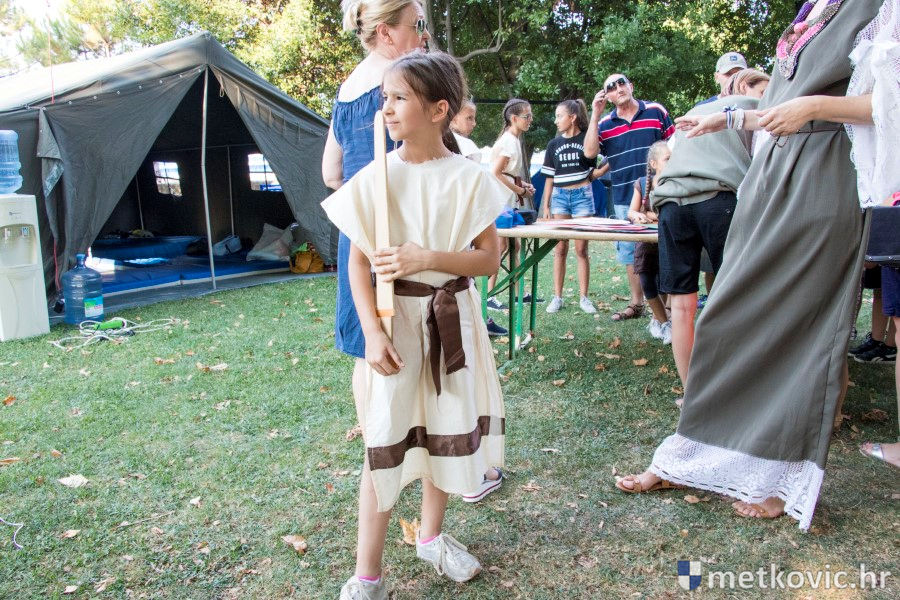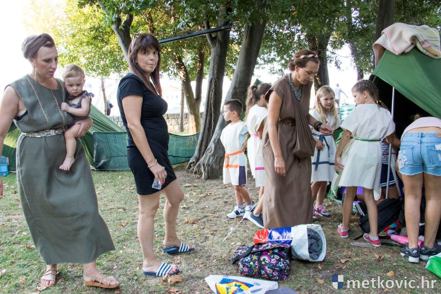 9.8.2018. - Poslijepodne je u gusarskome taboru vladala živost. Djeca su sa svojim roditeljima stizala prijaviti se u male neretvanske gusare. Među njima su se posebno isticale djevojčice - fotografirali smo njih šest iz jednoga ulaza. U 19 sati je svečano podizanje gusarske zastave, tj. početak manifestacije 'Dani neretvanske kneževine'.