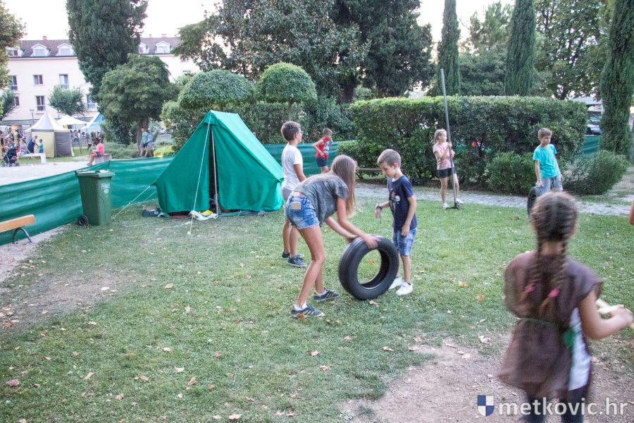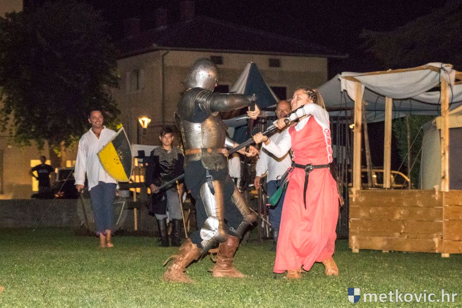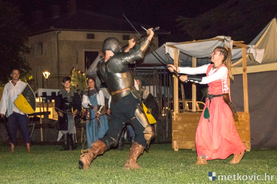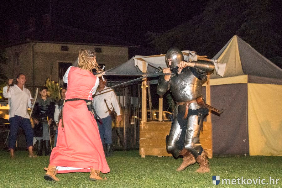 11.8.2018. - U Gradskome parku, što su ga zaposjeli mali neretvanski gusari, jučer je bilo iznimno živo. Nakon poslijepodnevne škole srednjovjekovnoga mačevanja i drugih vještina za njih je priređena predstava Dama i razbojnici te uprizorenje srednjovjekovne viteške bitke.