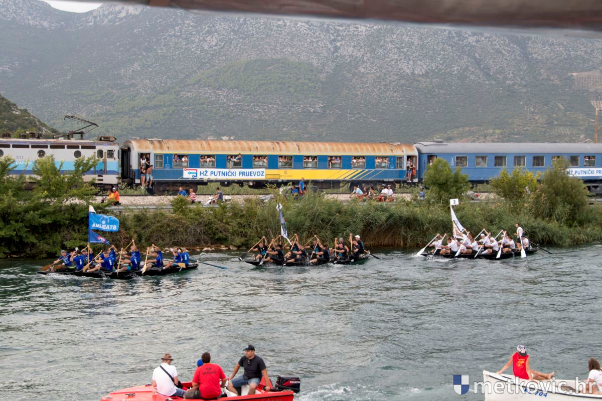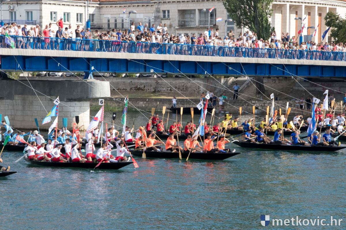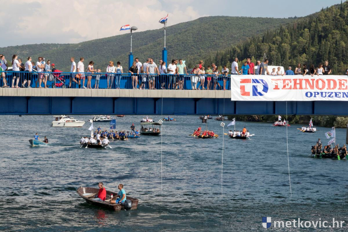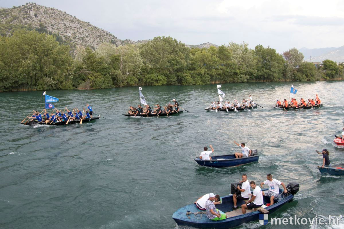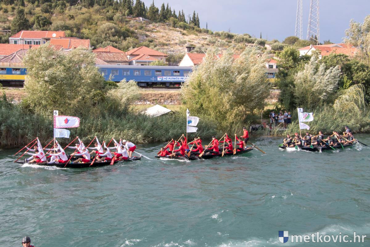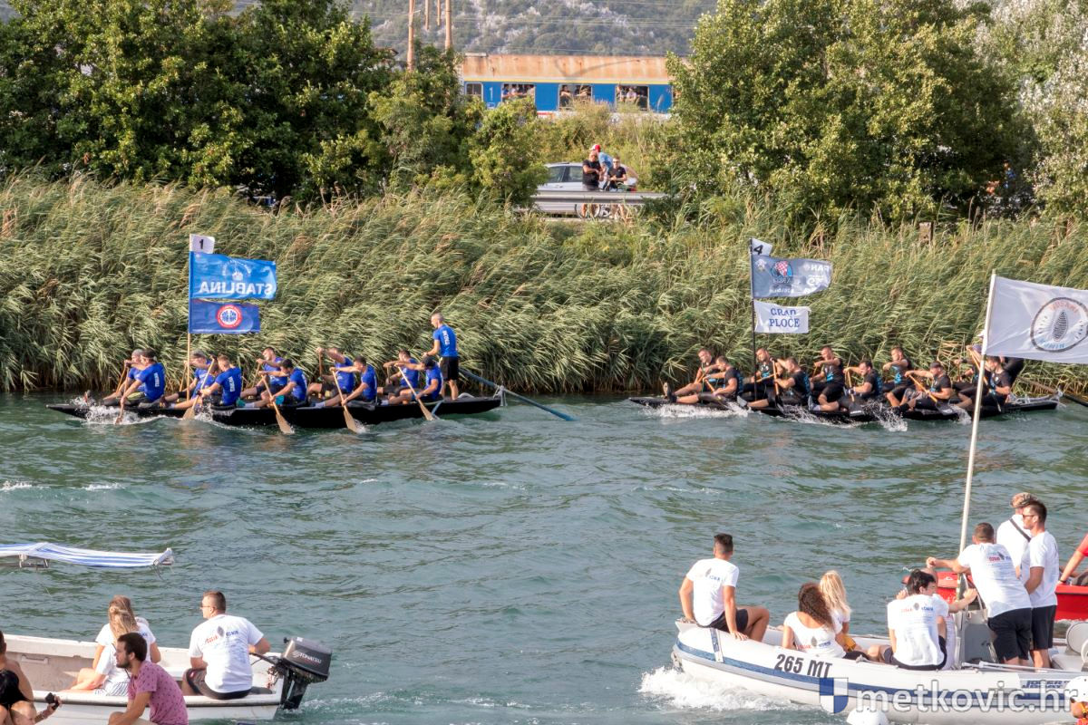 Pod visokim pokroviteljstvom predsjednice RH Kolinde Grabar-Kitarović jučer se Neretvom iz Metkovića put Ploča otisnulo 26 posada u neretvanskoj utrci svih utrka, koja sve više osvaja i ostatak Hrvatske. I ne samo to, neneretvanske ekipe sve su bolje i bolje pasirane u tome iznimno napornu natjecanju. To su osvajanjem drugoga mjesta ponovno dokazali bjelovarski Argonauti, a svako poštovanje zaslužili su: ekipa Hrvatskoga zavoda za transfuzijsku medicinu, HŠDO Bjelovar-Šumari i duga posada Argonauta, koji su se plasirali među prvih deset. Nije puno nedostajalo da to uspije ekipi Siska i Salašarima Somborskim.