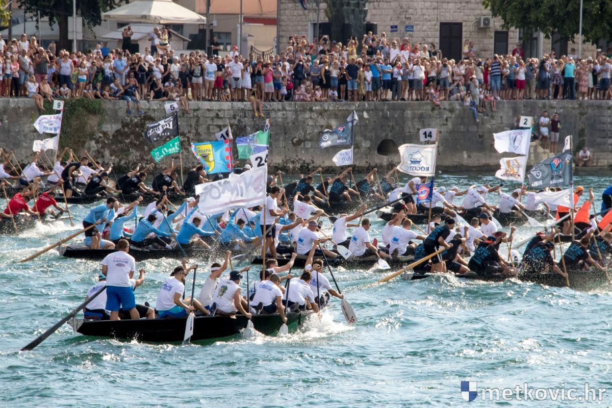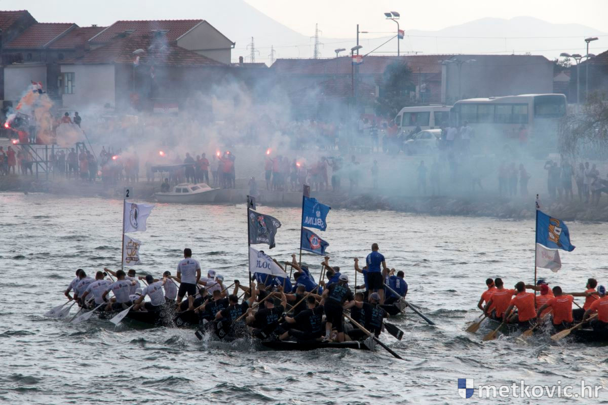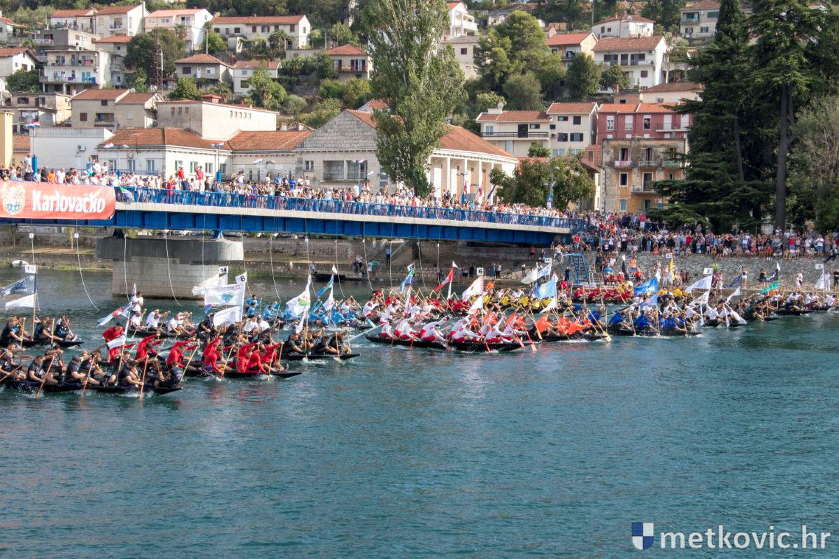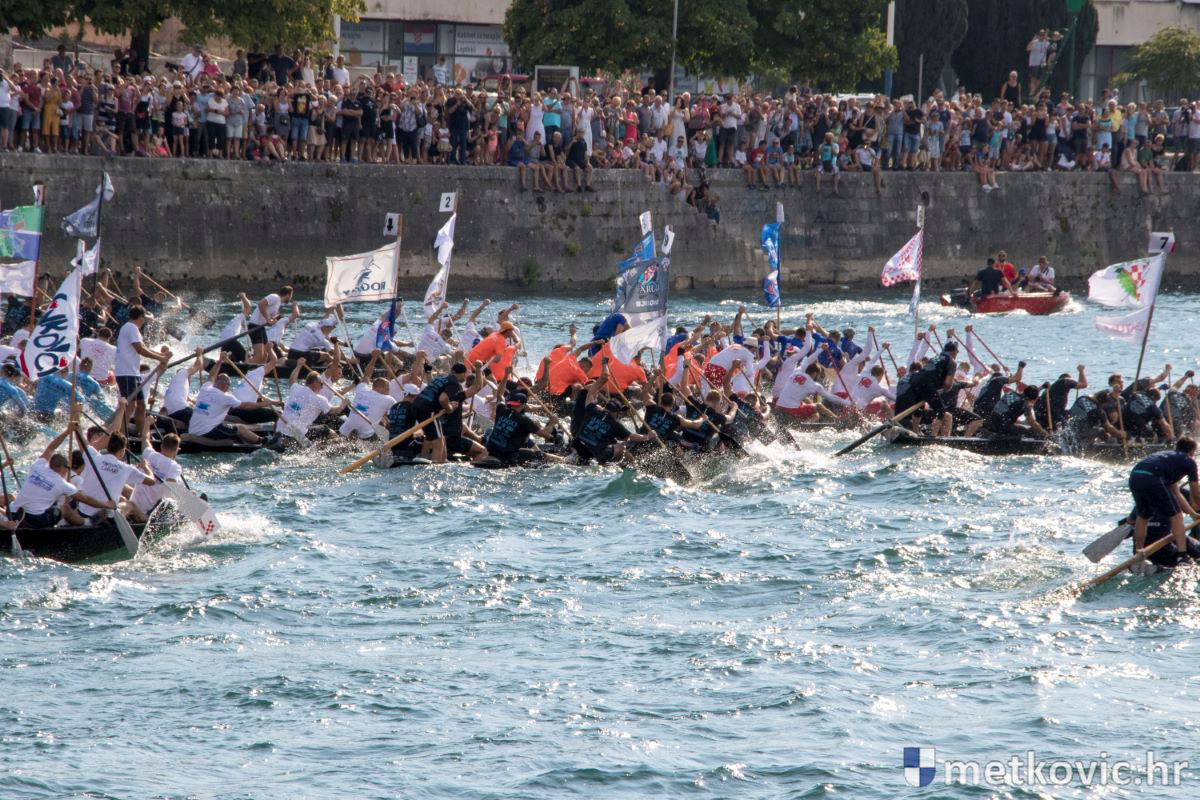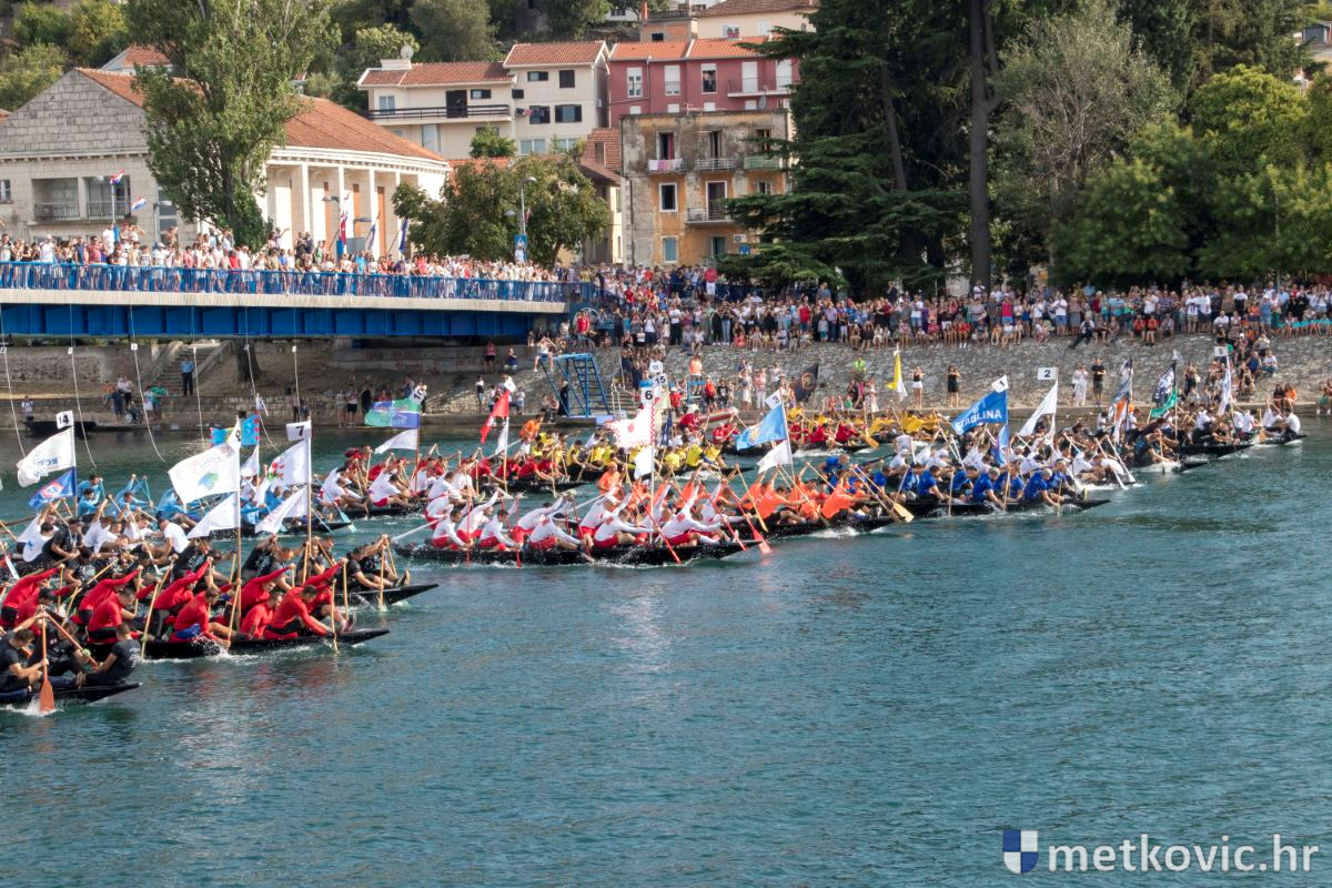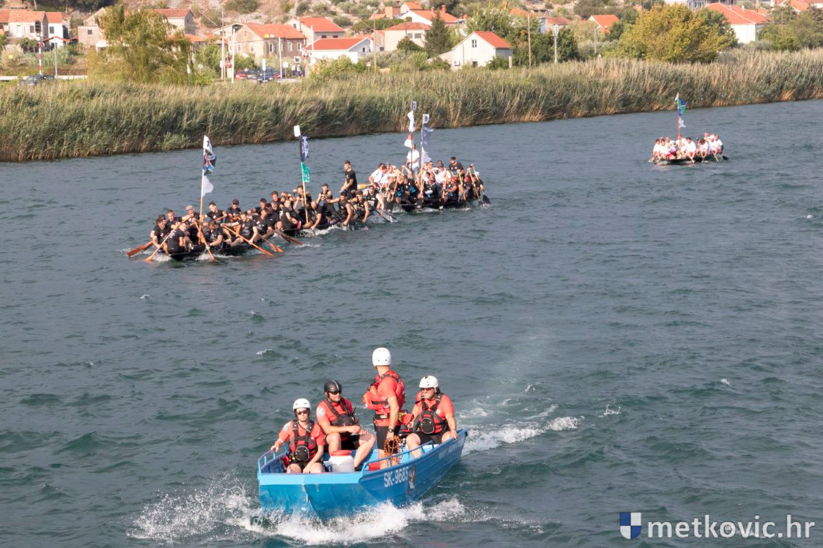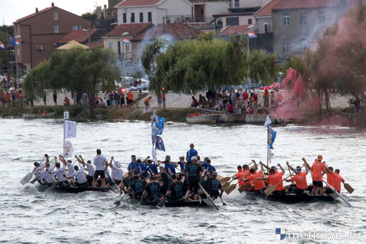 Pod visokim pokroviteljstvom predsjednice RH Kolinde Grabar-Kitarović jučer se Neretvom iz Metkovića put Ploča otisnulo 26 posada u neretvanskoj utrci svih utrka, koja sve više osvaja i ostatak Hrvatske. I ne samo to, neneretvanske ekipe sve su bolje i bolje pasirane u tome iznimno napornu natjecanju. To su osvajanjem drugoga mjesta ponovno dokazali bjelovarski Argonauti, a svako poštovanje zaslužili su: ekipa Hrvatskoga zavoda za transfuzijsku medicinu, HŠDO Bjelovar-Šumari i duga posada Argonauta, koji su se plasirali među prvih deset. Nije puno nedostajalo da to uspije ekipi Siska i Salašarima Somborskim.