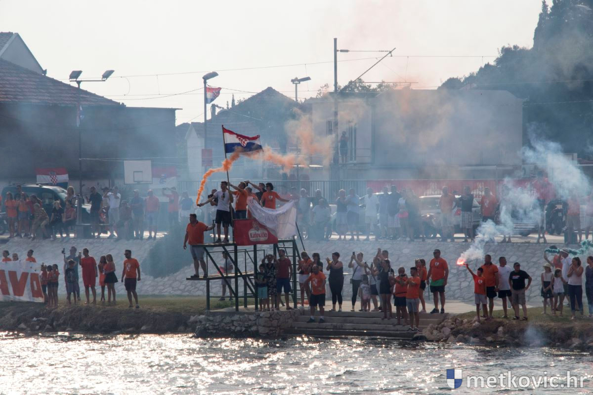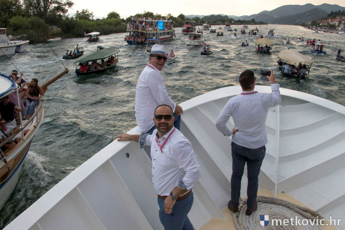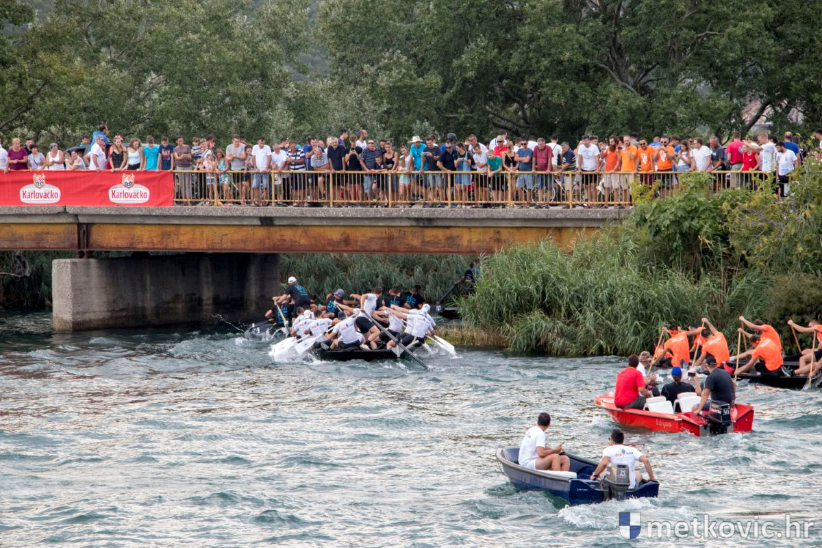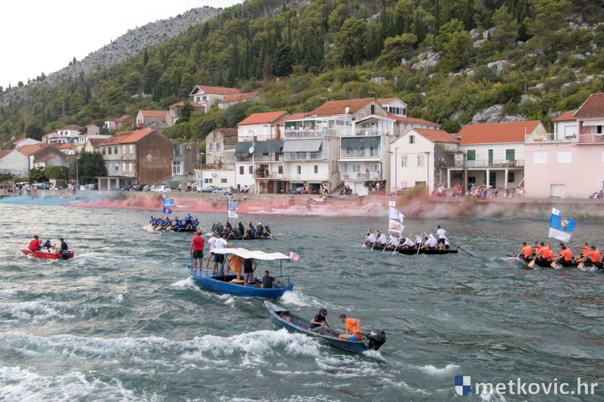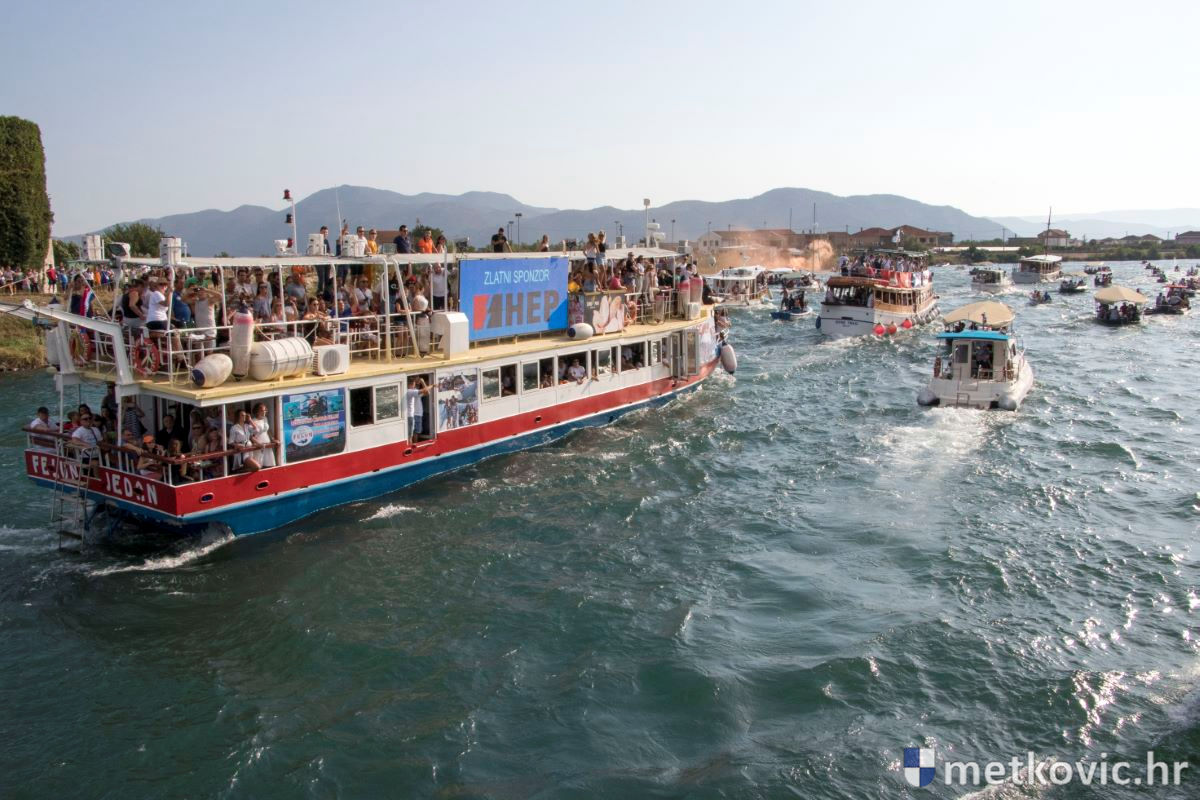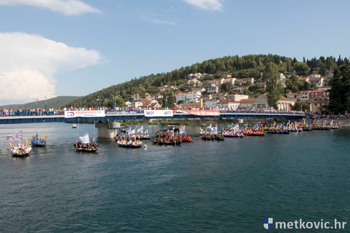 Pod visokim pokroviteljstvom predsjednice RH Kolinde Grabar-Kitarović jučer se Neretvom iz Metkovića put Ploča otisnulo 26 posada u neretvanskoj utrci svih utrka, koja sve više osvaja i ostatak Hrvatske. I ne samo to, neneretvanske ekipe sve su bolje i bolje pasirane u tome iznimno napornu natjecanju. To su osvajanjem drugoga mjesta ponovno dokazali bjelovarski Argonauti, a svako poštovanje zaslužili su: ekipa Hrvatskoga zavoda za transfuzijsku medicinu, HŠDO Bjelovar-Šumari i duga posada Argonauta, koji su se plasirali među prvih deset. Nije puno nedostajalo da to uspije ekipi Siska i Salašarima Somborskim.