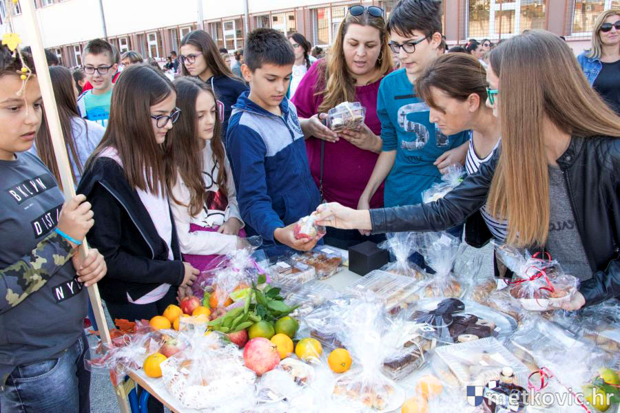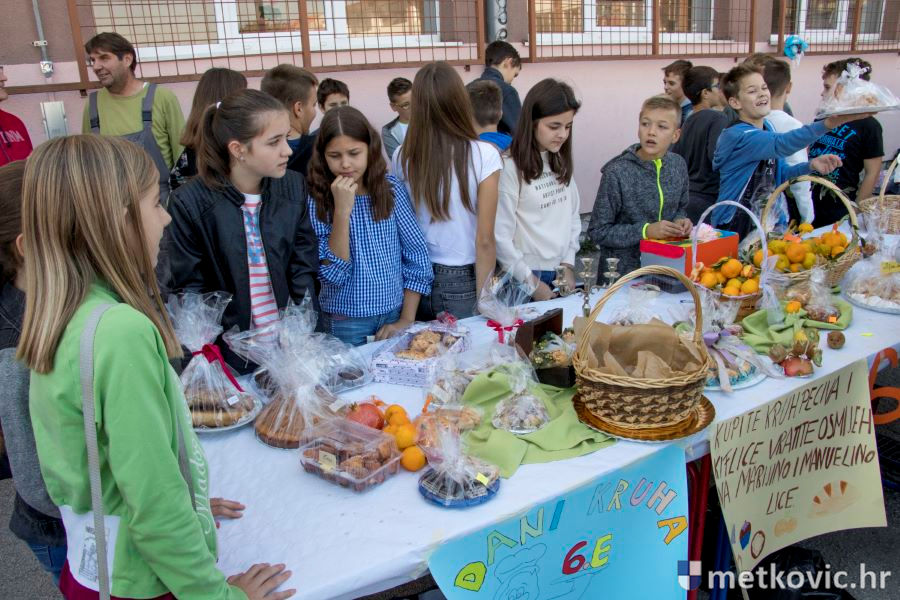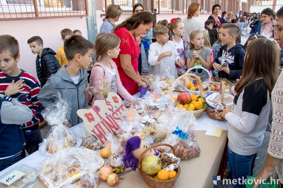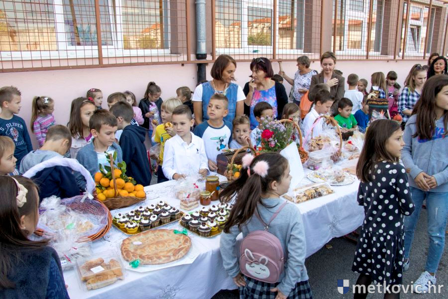 Šarenilo kruhova, peciva, kolača i neretvanskih plodova zemlje, koje su sa svojim učiteljicama i razrednicama izložili učenici, mamilo je na kupnju. I kupovalo se kako bi se pomoglo liječenju dviju učenica te škole; Manuele Čuture i Marije Dominiković. U programu je sudjelovao Školski zbor, a nakon pozdravnih riječi ravnateljice Božene Nikoletić kruhove i ostale darove prirode blagoslovio je don Mladen Margeta.