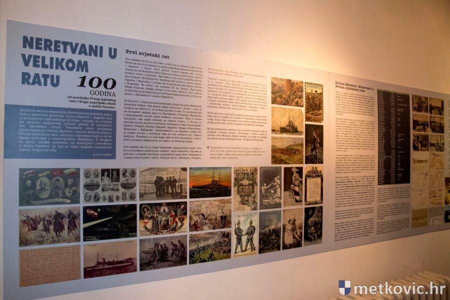 Osim podataka i fotografija i predmeta Neretvana koji su sudjelovali u Prvome svjetsko ratu, postavljeni su i veliki panoi s puno zanimljivih i manje poznatih podataka, a Galerijom dominiraju velika obješena platna sa siluetama vojnika i ratne tehnike toga doba.
