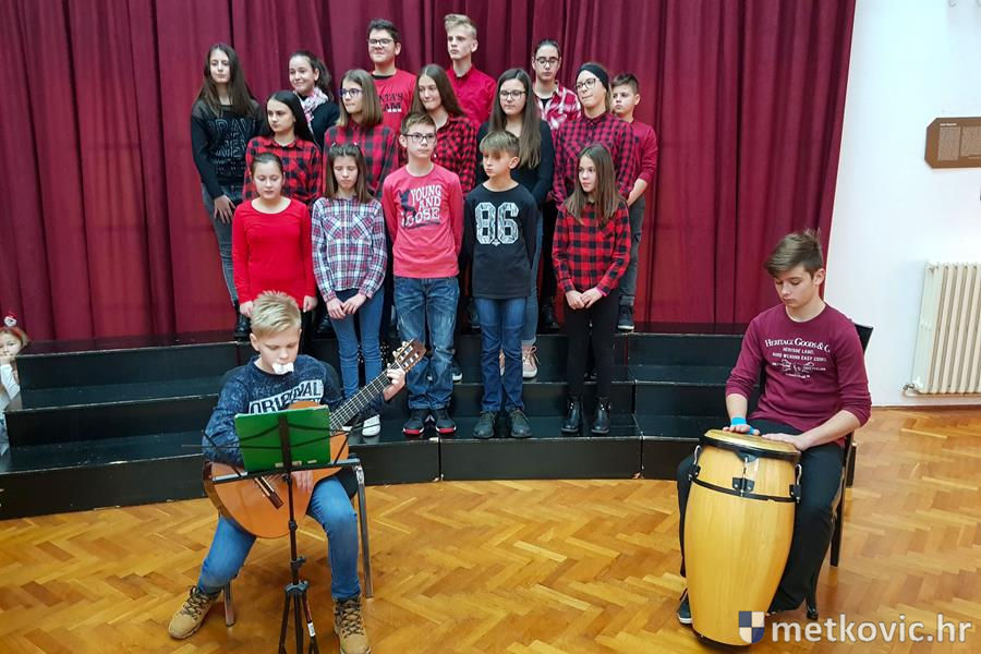 Uz Mali i Veliki zbor škole domaćina nastupili su još zborovi OŠ 'Vladimir Nazor' iz Ploča, OGŠ Metković i OŠ Kula Norinska, kojima su ravnali Ljupka Sršen Gutić, Helena Decovski Ćavar, Dragan Gutić i Zrinka Boras, a klavirsku pratnju pružile su Matea Jurilj i Zrinka Boras. Kao gosti nastupili su pjevači Klape 'Metković', koje je vodila Marija Maja Jerković. Na kraju su svi izvođači skupa otpjevali božićni 'klasik' Jingle bell rock.