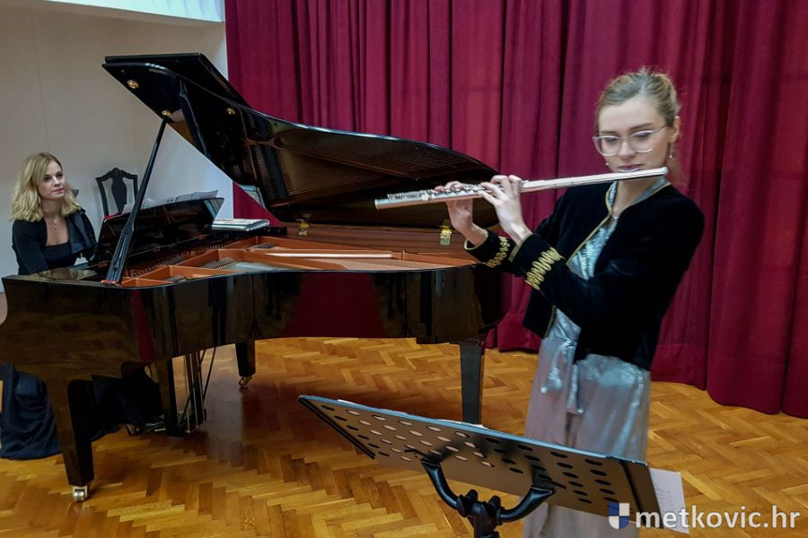 Gošće je najavila i pozdravila ravnateljica Ustanove za kulturu i sport Metković Zrinka Mijoč, a potom je Bachovom Sonatom za flautu u C-duru započeo program na kojemu su se još našla djela Glucka, Chopina, Dore Pejačević i drugih. Virtuoznost mladih glazbenica publika je naročito pozdravila nakon izvođenja Bartokovih Rumunjskih plesova i Borneovih varijacija na Bizetovu Habaneru iz opere Carmen. Kraj koncerta bio je ostavljen za prigodni Adeste fideles u aranžmanu Davida Willcocksa, no nakon dugotrajna pljeska uslijedio je i dodatak.