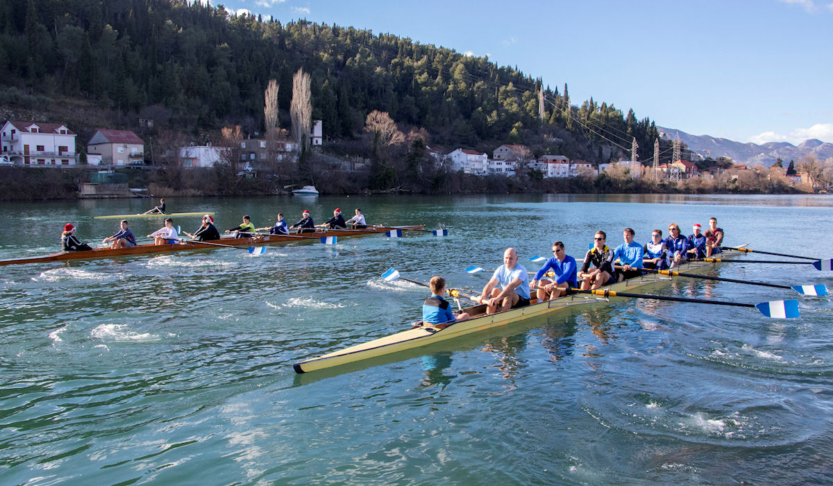 Metković, 1.1.2019. - Tradicionalnim izlaskom na Neretvu na Silvestrovo, veslači VK Neretvanski gusar ispratili su Staru godinu i uputili svima svoju novogodišnju čestitku.