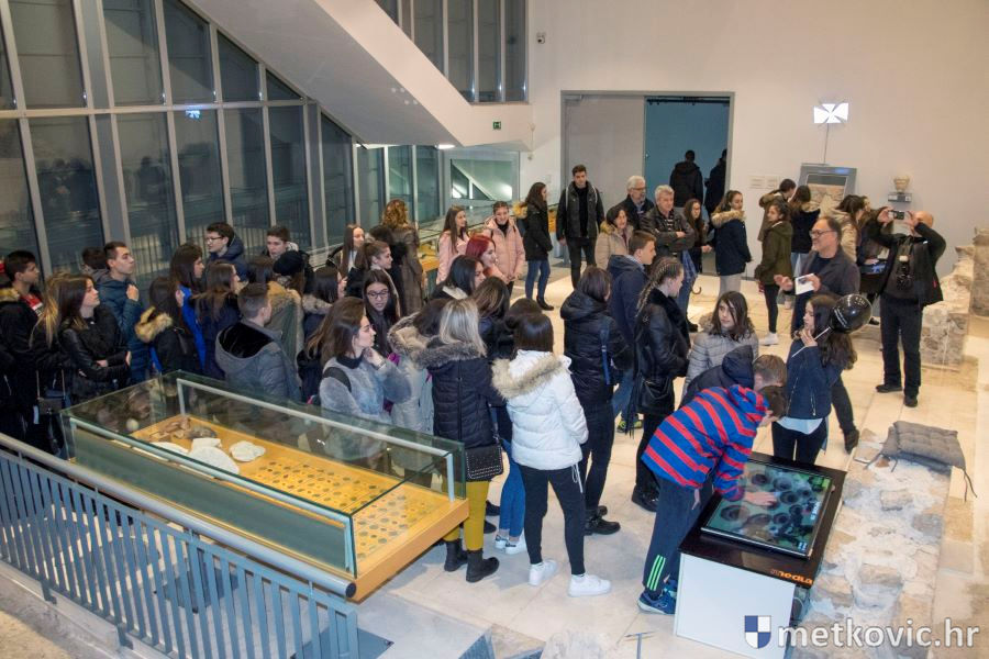 Pred Arheološkim muzejom Narona u Vidu zatekli smo dugačak red mostarskih gimnazijalaca, njih dvjestotinjak koji su sa svojim profesorima došli posjetiti prvi hrvatski 'muzej in situ'. Doznali smo da je iz Vrgorca došlo sedamdesetak učenika, a zabilježili smo i skupni posjet naših malih rukometaša. Osim stručnoga vodstva kroz stalni postav, posjetitelji su mogli vidjeti različite načine digitalnoga predstavljanja muzejskih eksponata, igrati videoigrice, ali i antičku trlju te sudjelovati na kvizovima i radionicama.
