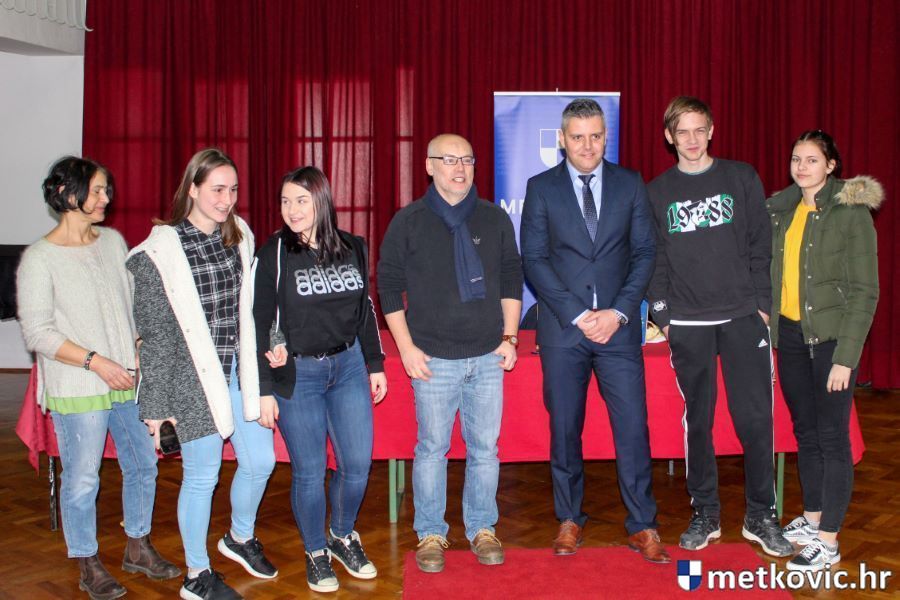 16.2.2019. - Zamjenik gradonačelnika Damir Raić u Galeriji GKS-a primio je 12 učenika i sedmero nastavnika iz Italije, Slovenije i Turske, koji u sklopu ERASMUS+ projekta G.E.O.P.A.R.K.S.- Curtural Heritage gostuju u Srednjoj školi Metković te im uručio prigodne darove.