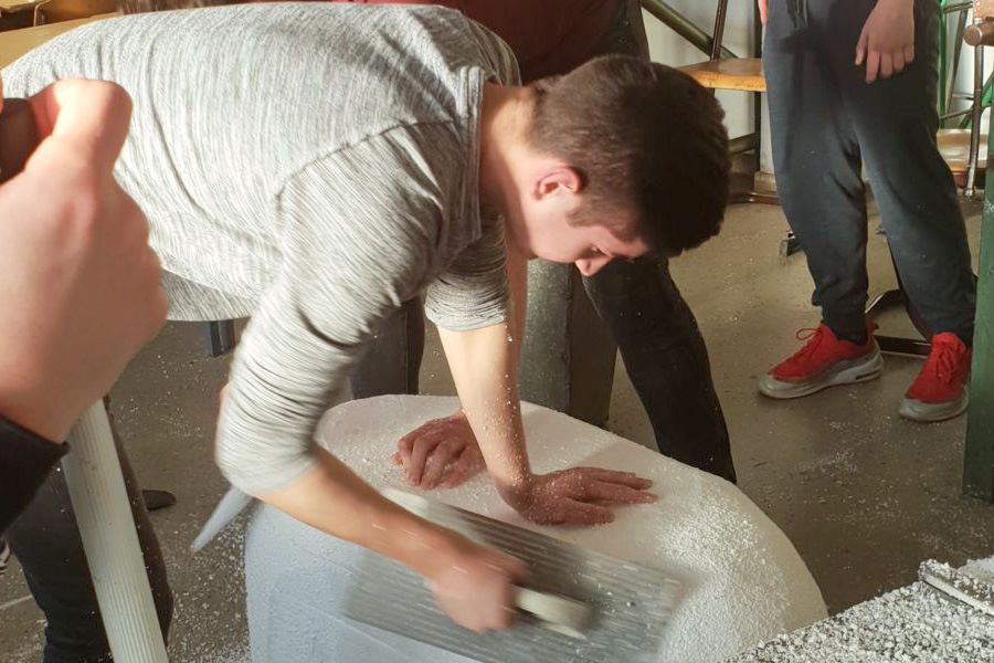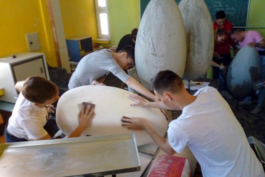 5.4.2019. - Ovih je dana veselo u radionici Srednje škole Metković. Učenici 4. b i 2. b, smjera građevinski tehničar, te 3. d, smjera računalni tehničar, sa svojim su profesorima Zoranom Grgićem, Matejom Lazarevićem, Vedranom Nižićem i Josipom Cvitanovićem te pedagoginjom Violetom Oršulić izrađivali velike pisanice.
