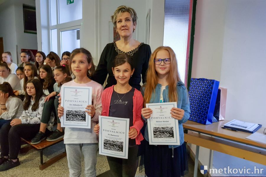 Metković, 12.4.2019. - Osnovna škola don Mihovila Pavlinovića bila je sinoć domaćinom svečanoj dodjeli priznanja učenicima neretvanskih osnovnih škola, koji su pobijedili na 2. Literarnom natječaju 'Perom o Neretvi', što ga je u suradnji s tom školom proveo metkovski ogranak Matice hrvatske.