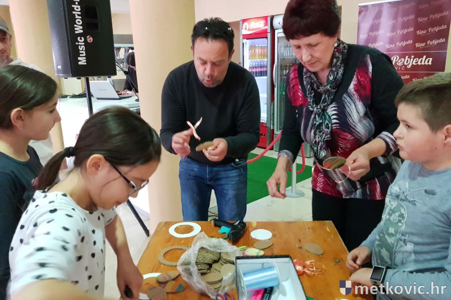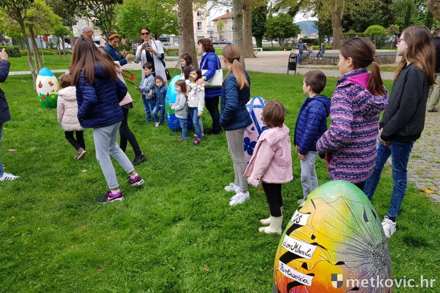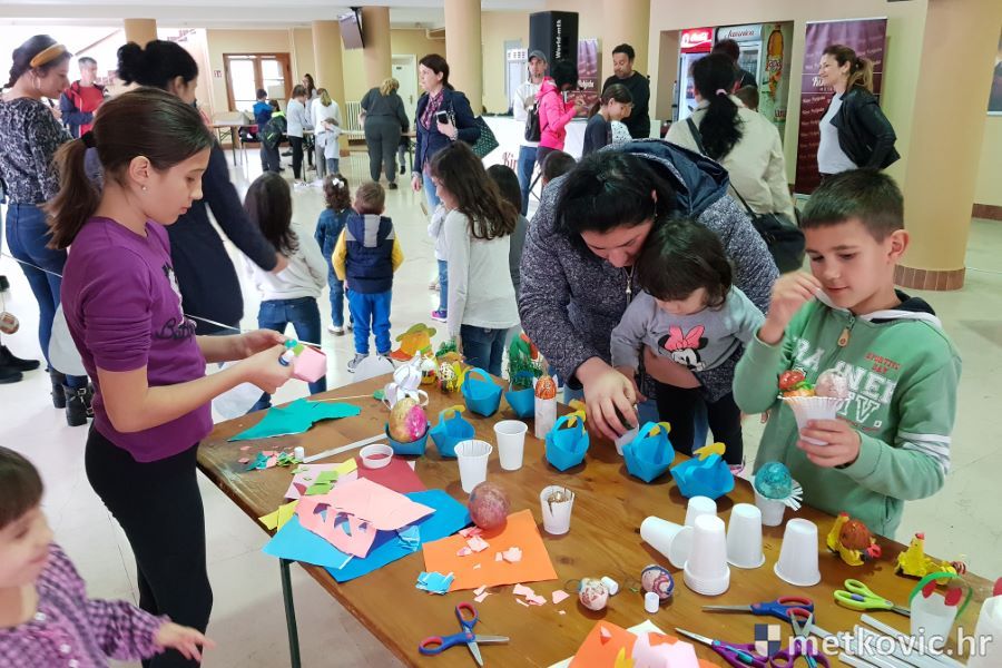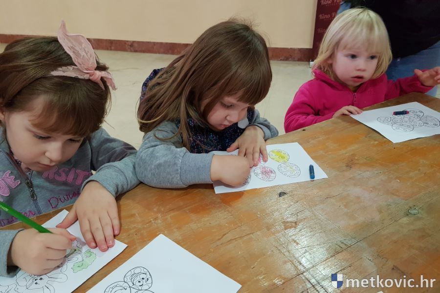 14.4.2019. - Nakon što su velike pisanice, koje su izradili učenici Srednje škole Metković sa svojim profesorima Zoranom Grgićem, Matejom Lazarevićem, Vedranom Nižićem, Josipom Cvitanovićem i pedagoginjom Violetom Oršulić, postavljene u Gradskom parku, jučer je u GKS-u održana radionica na kojoj su mališani izrađivali različite uskrsne ukrase.