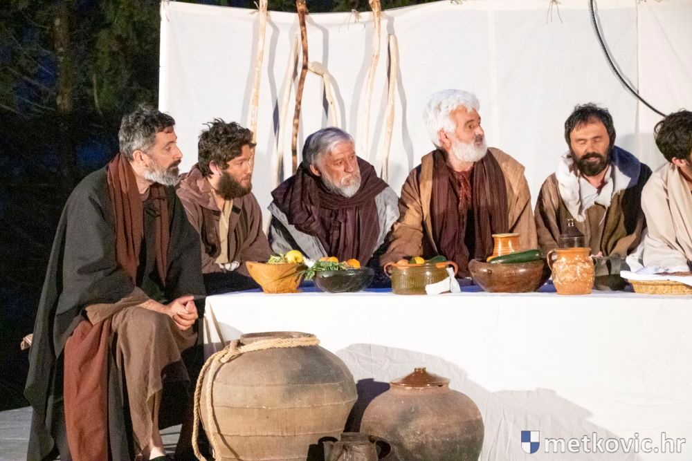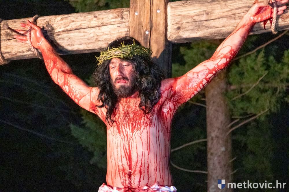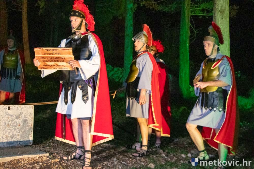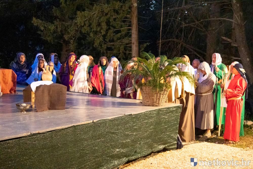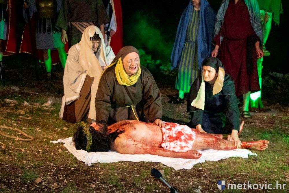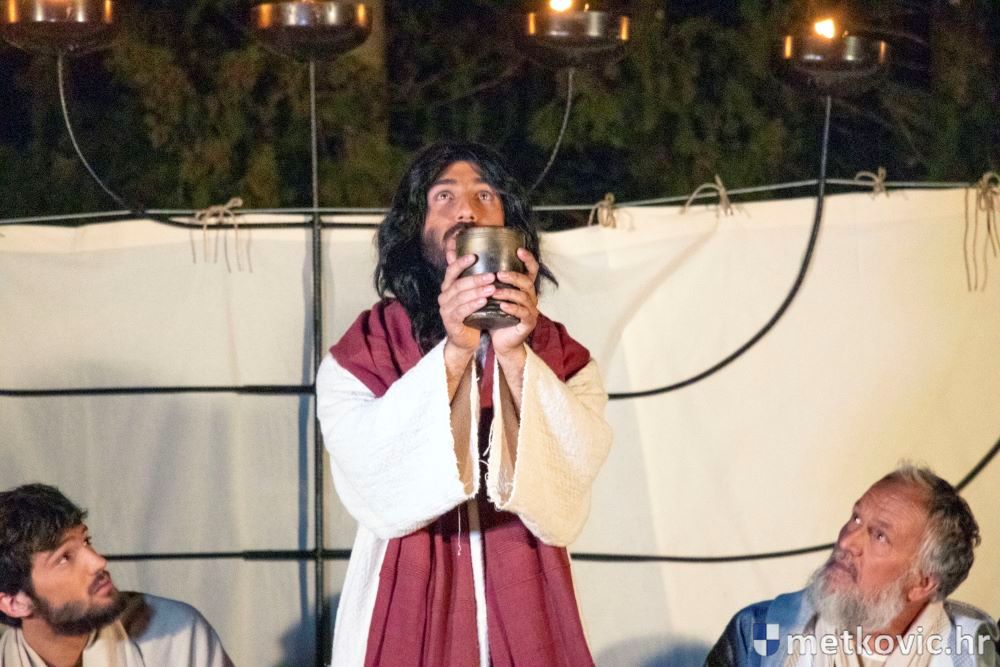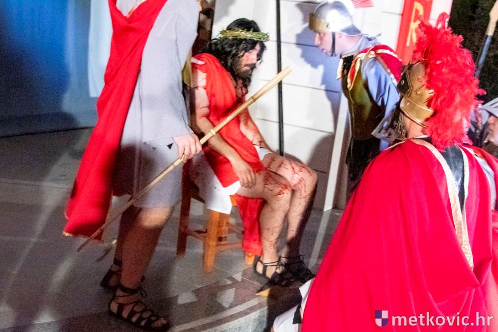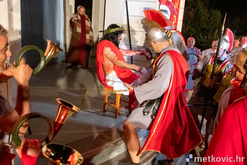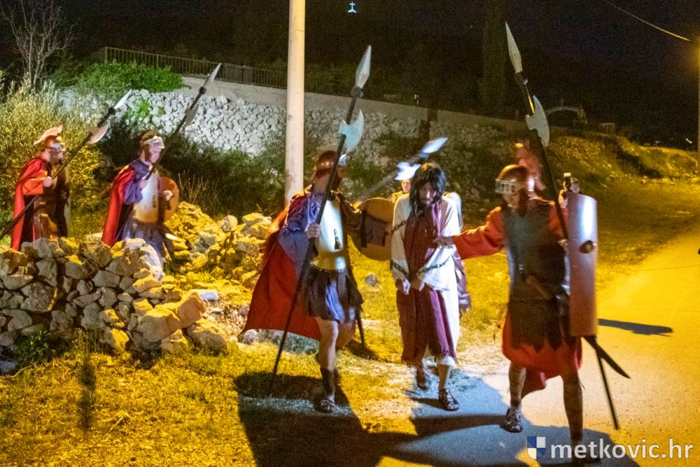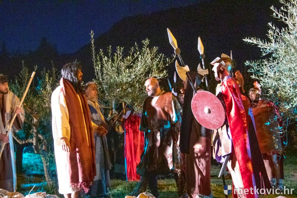 Riječ je o predstavi u kojoj je u režiji Branka Medaka sudjelovalo više od stotinu glumaca amatera i statista te žudije i Zbor Župe sv. Nikole. Isusa Krista tumačio je Marko Jerković, njegovu majku Anđela Brečić, Veroniku Maja Jerković, Poncija Pilata Ivan Menalo, Kajfu Nikola Primorac, velikoga svećenika Anu Tihomir Bandur te Petra i Judu Martin Medak i Igor Ivanković itd.