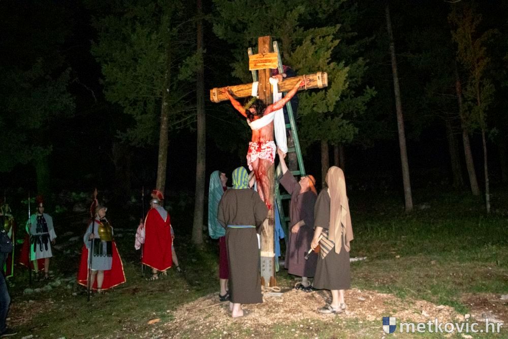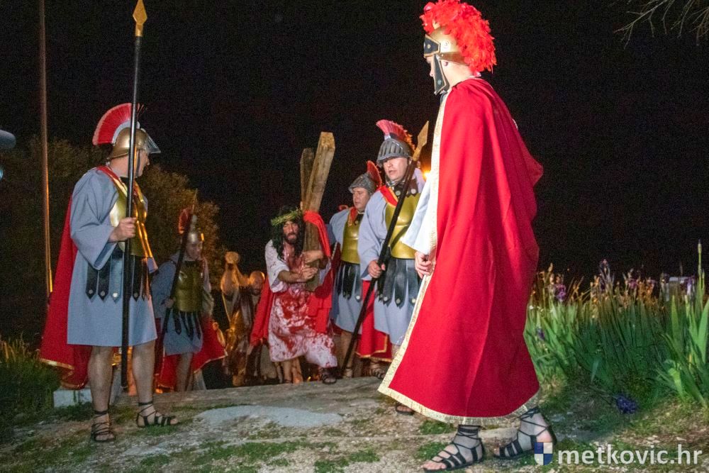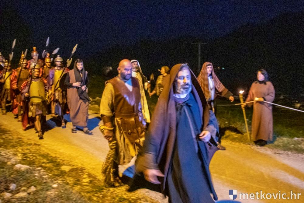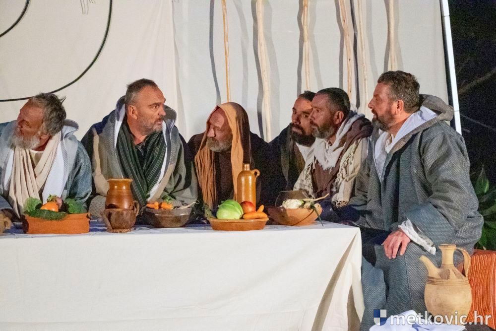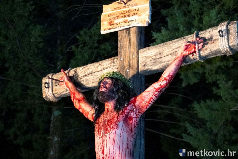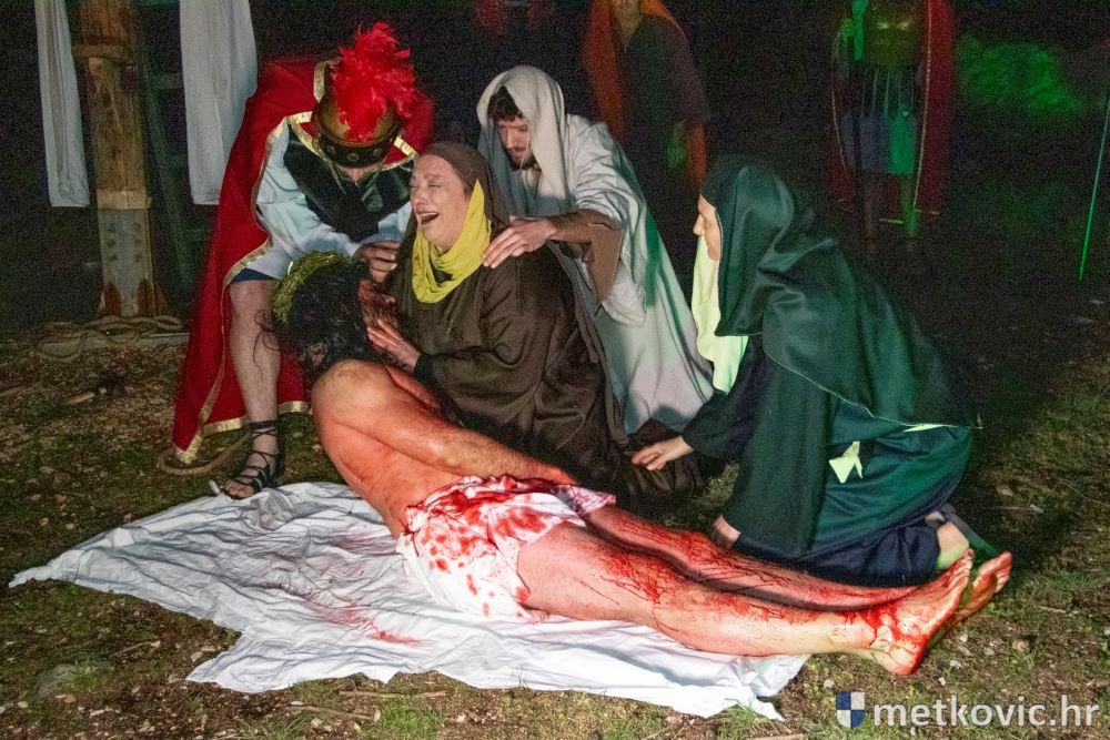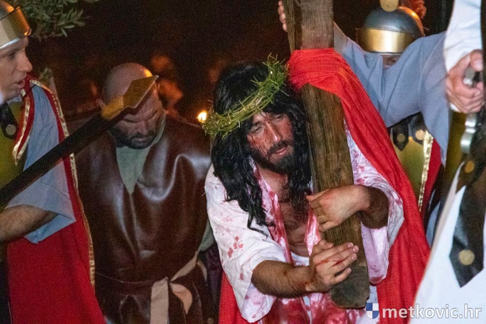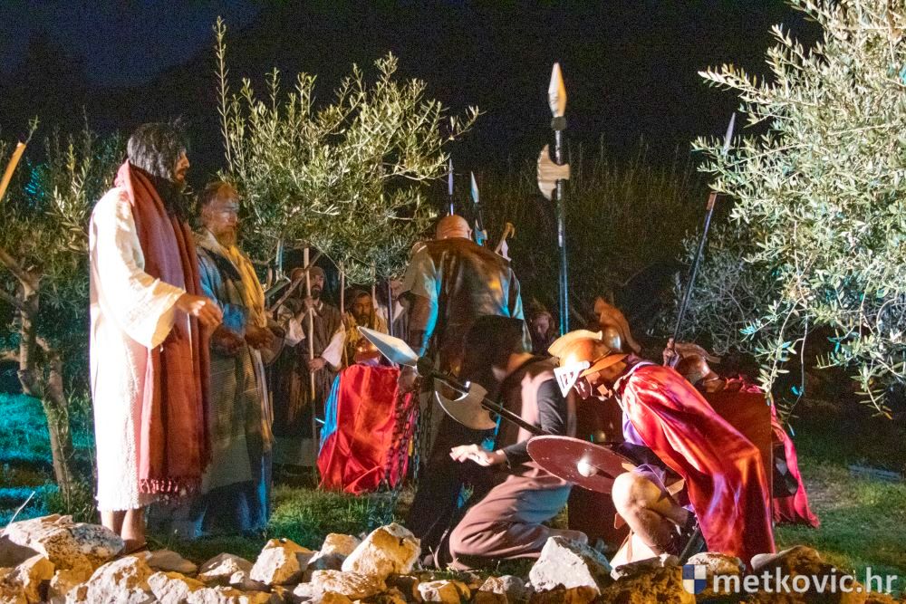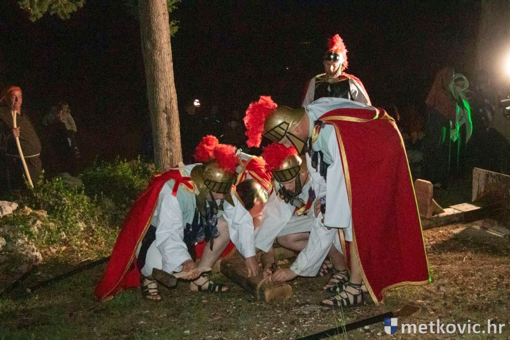 Riječ je o predstavi u kojoj je u režiji Branka Medaka sudjelovalo više od stotinu glumaca amatera i statista te žudije i Zbor Župe sv. Nikole. Isusa Krista tumačio je Marko Jerković, njegovu majku Anđela Brečić, Veroniku Maja Jerković, Poncija Pilata Ivan Menalo, Kajfu Nikola Primorac, velikoga svećenika Anu Tihomir Bandur te Petra i Judu Martin Medak i Igor Ivanković itd.