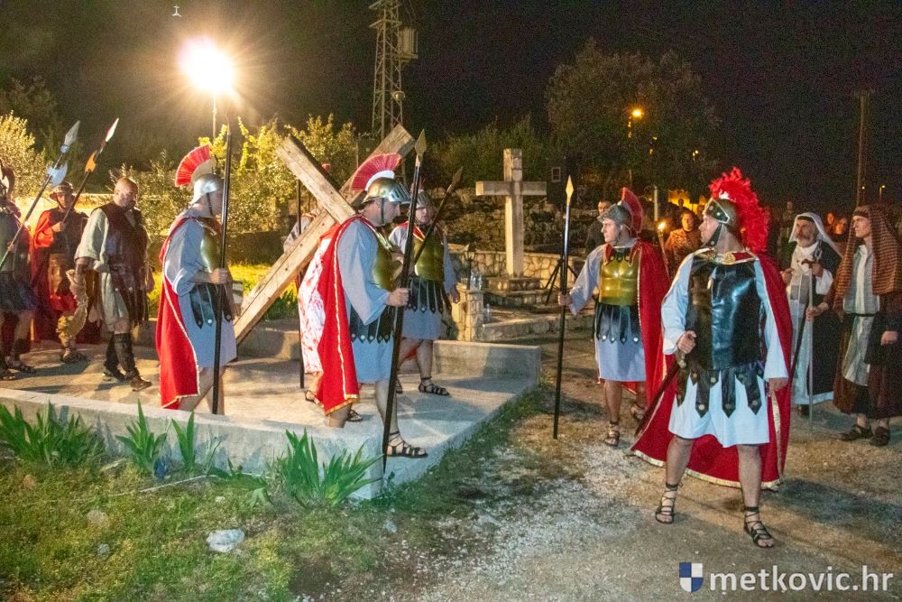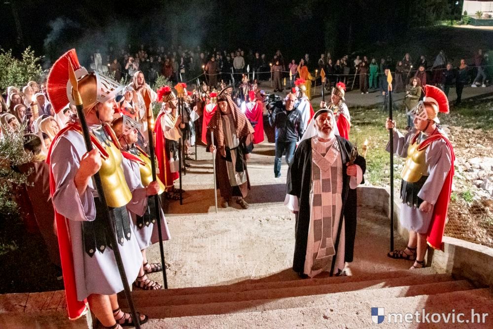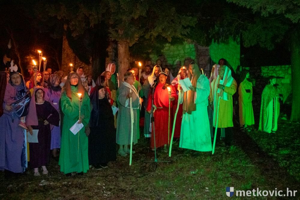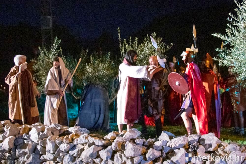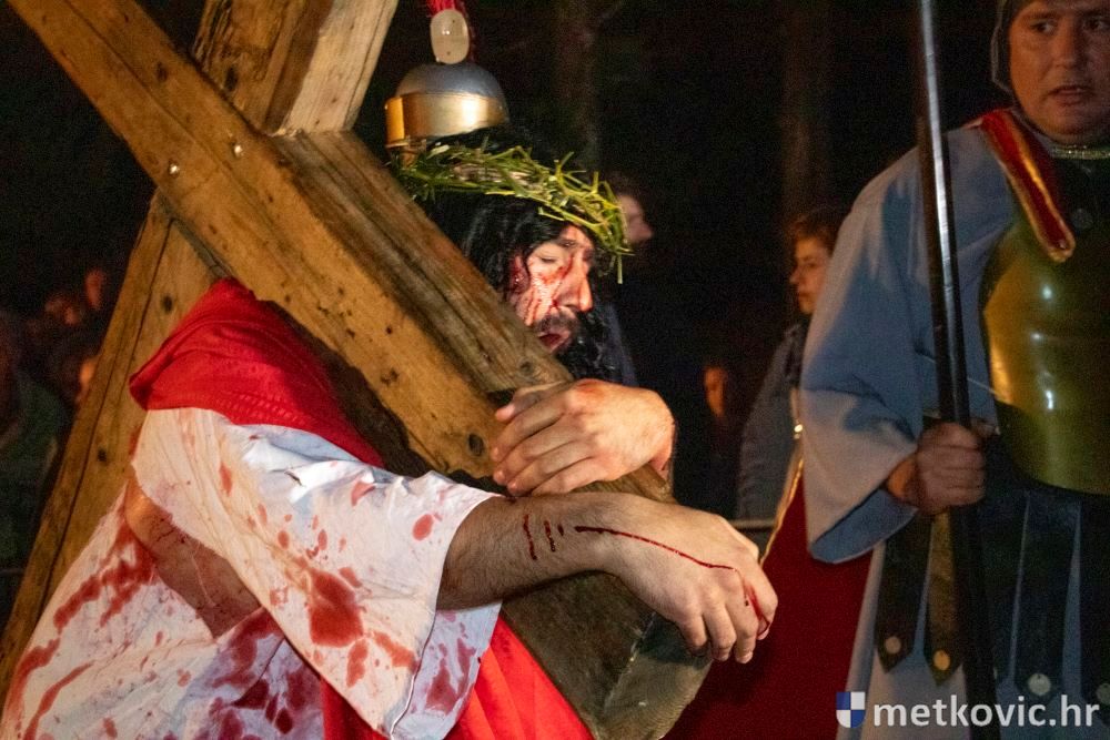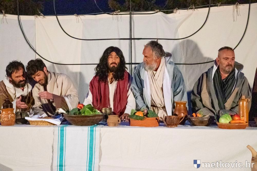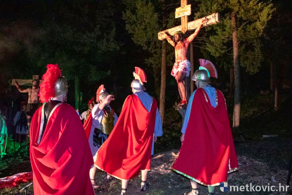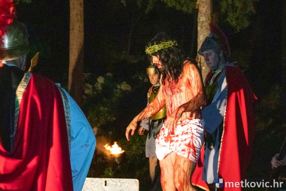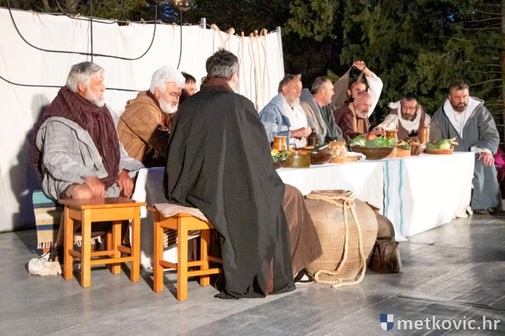 Riječ je o predstavi u kojoj je u režiji Branka Medaka sudjelovalo više od stotinu glumaca amatera i statista te žudije i Zbor Župe sv. Nikole. Isusa Krista tumačio je Marko Jerković, njegovu majku Anđela Brečić, Veroniku Maja Jerković, Poncija Pilata Ivan Menalo, Kajfu Nikola Primorac, velikoga svećenika Anu Tihomir Bandur te Petra i Judu Martin Medak i Igor Ivanković itd.