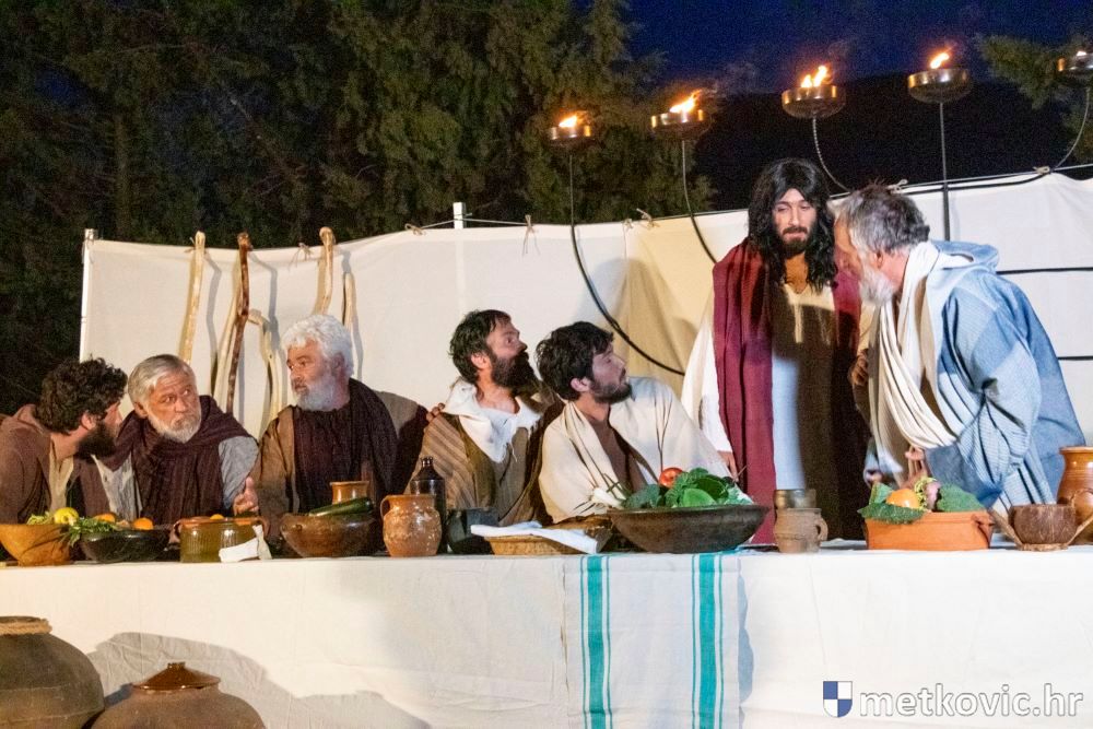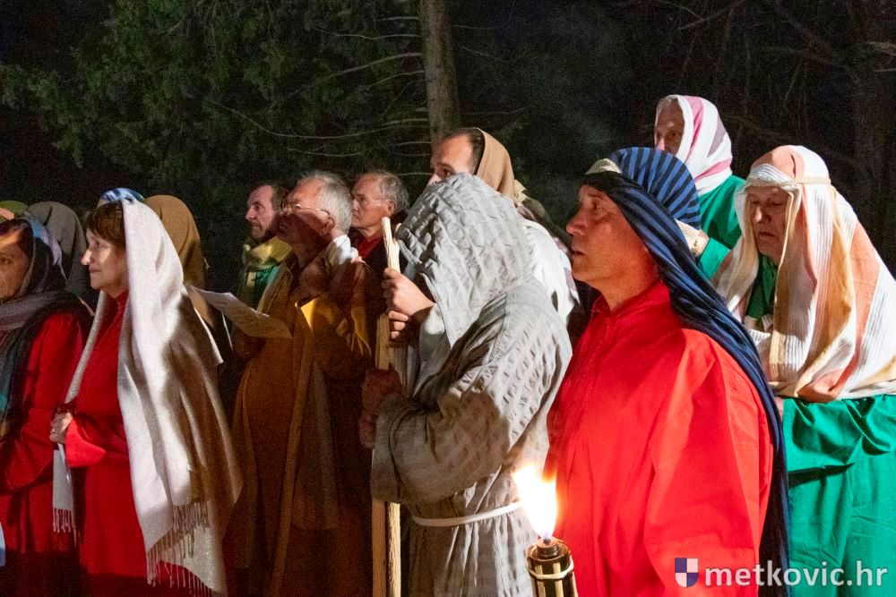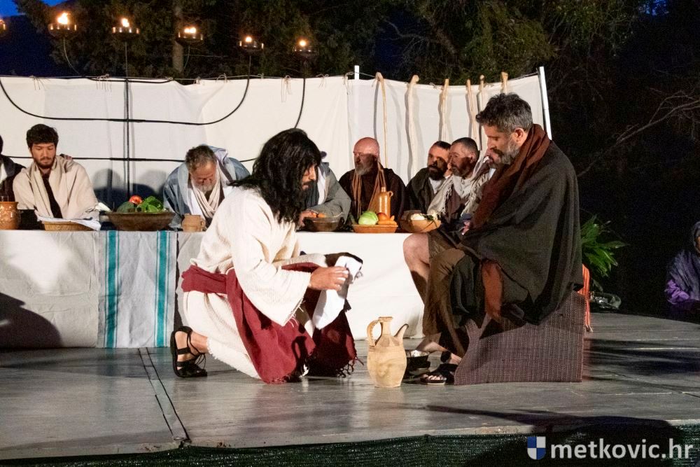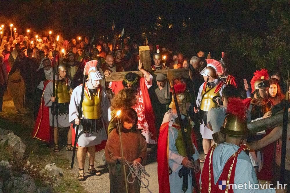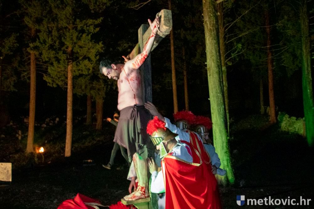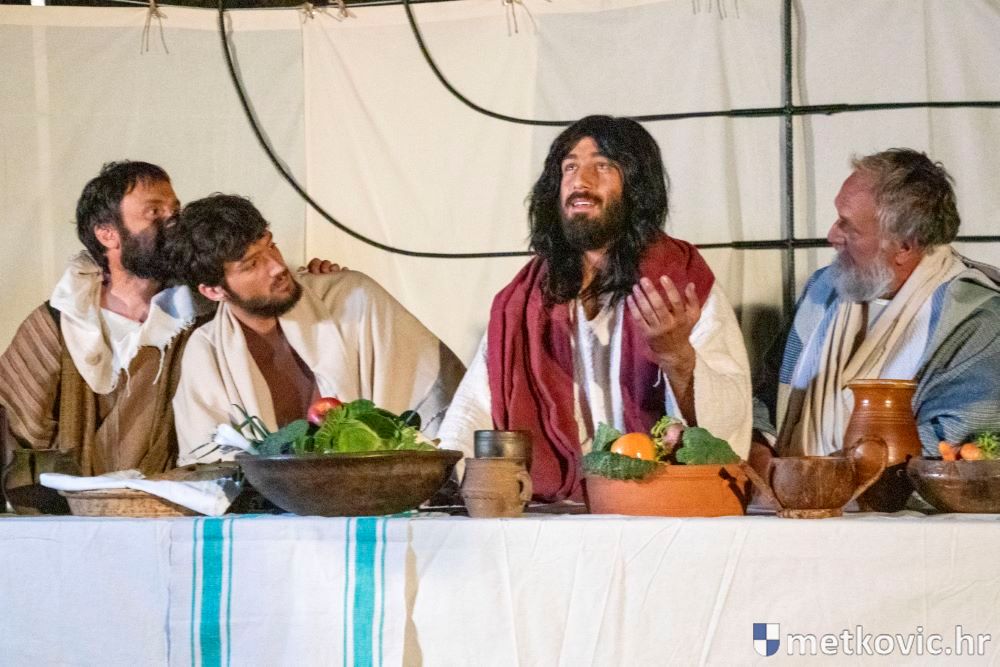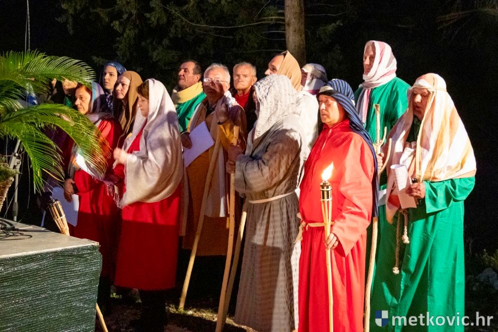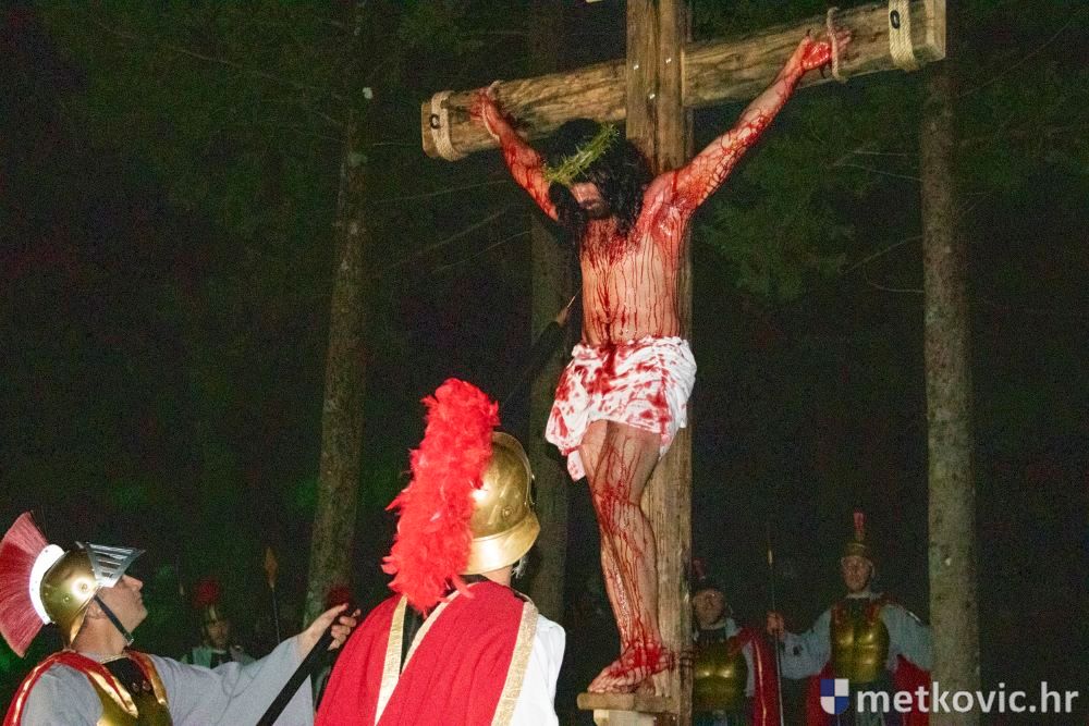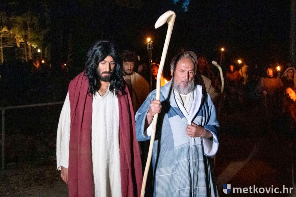 Riječ je o predstavi u kojoj je u režiji Branka Medaka sudjelovalo više od stotinu glumaca amatera i statista te žudije i Zbor Župe sv. Nikole. Isusa Krista tumačio je Marko Jerković, njegovu majku Anđela Brečić, Veroniku Maja Jerković, Poncija Pilata Ivan Menalo, Kajfu Nikola Primorac, velikoga svećenika Anu Tihomir Bandur te Petra i Judu Martin Medak i Igor Ivanković itd.