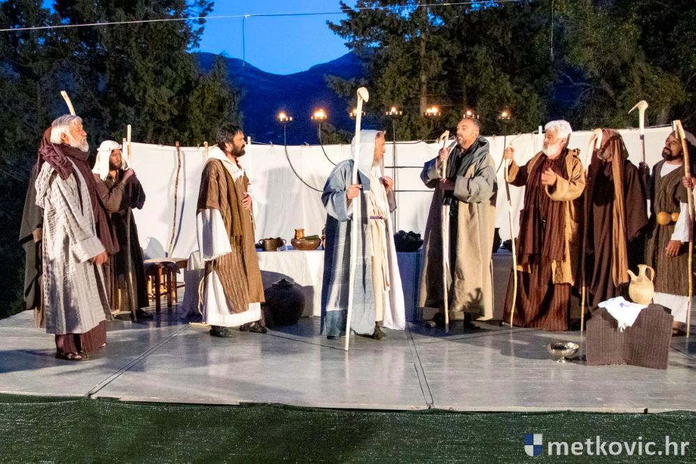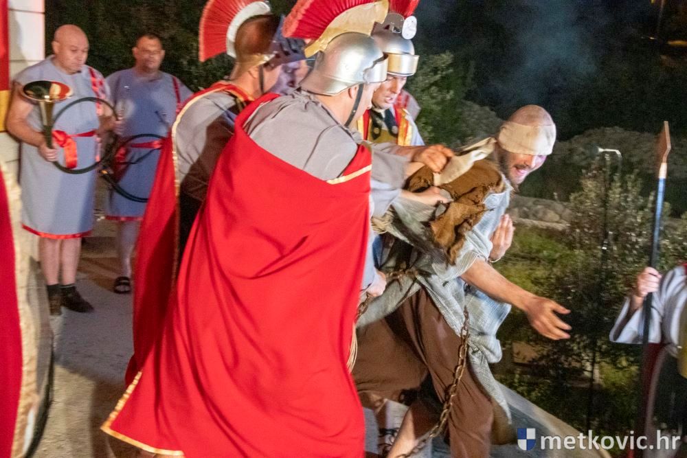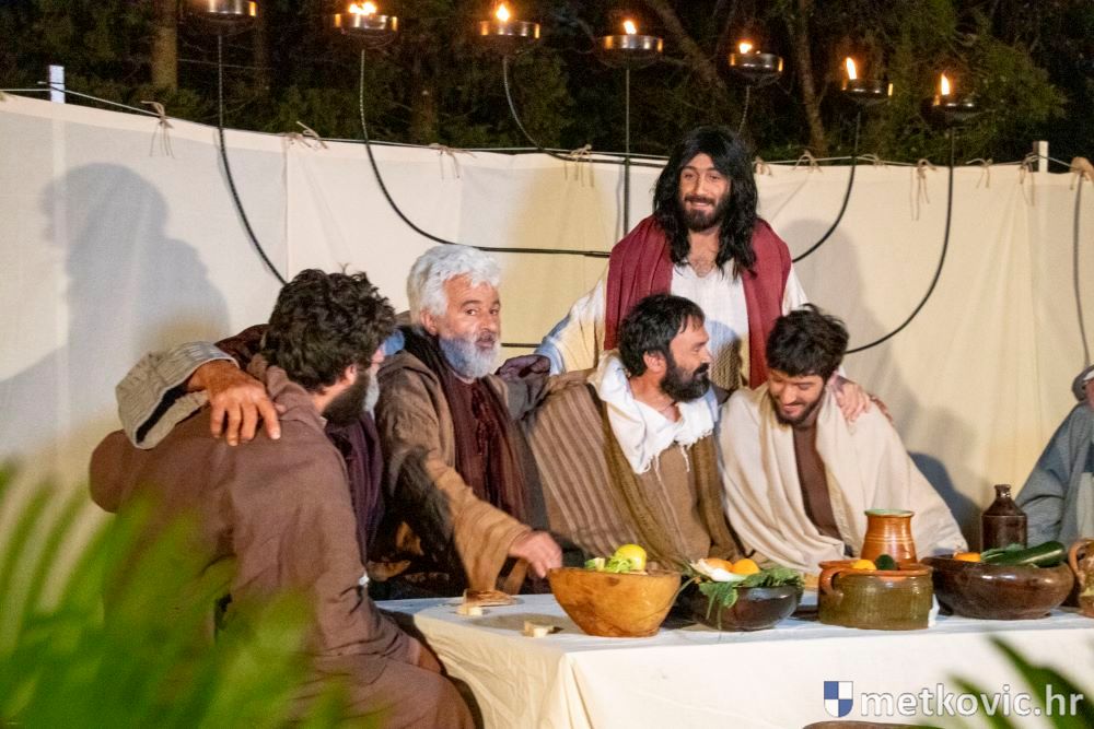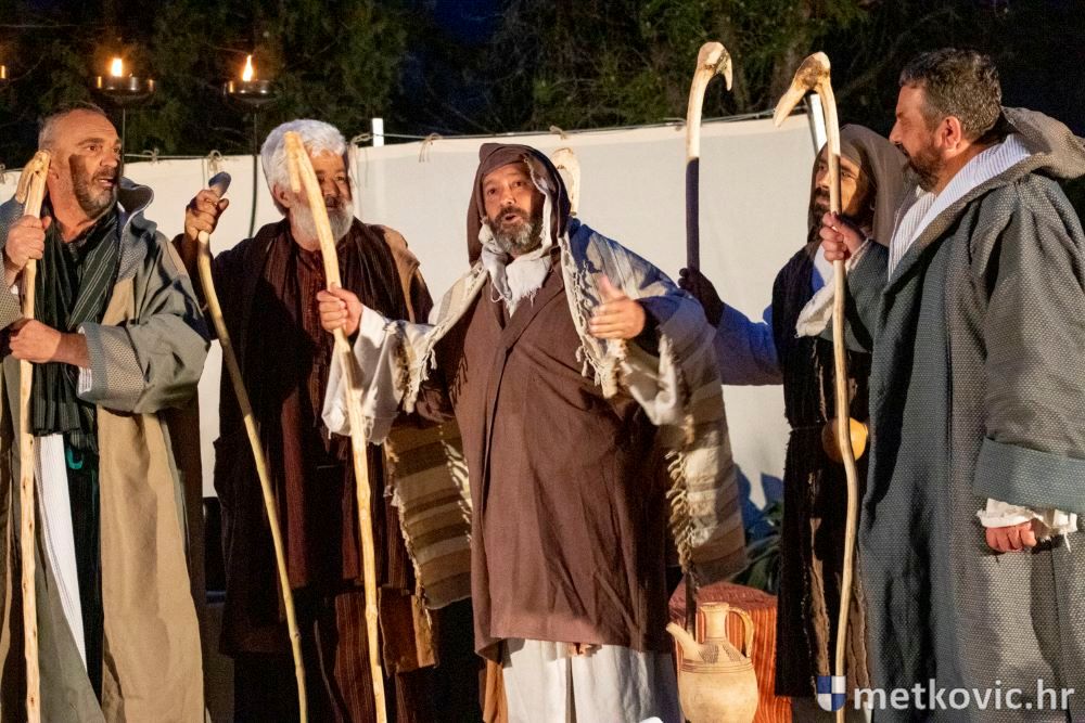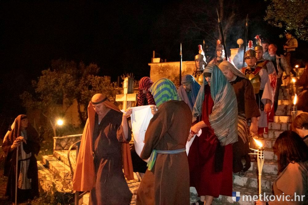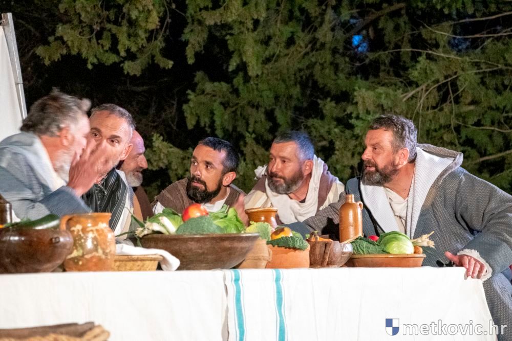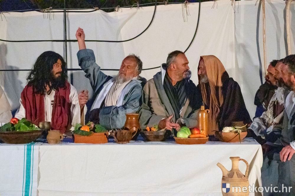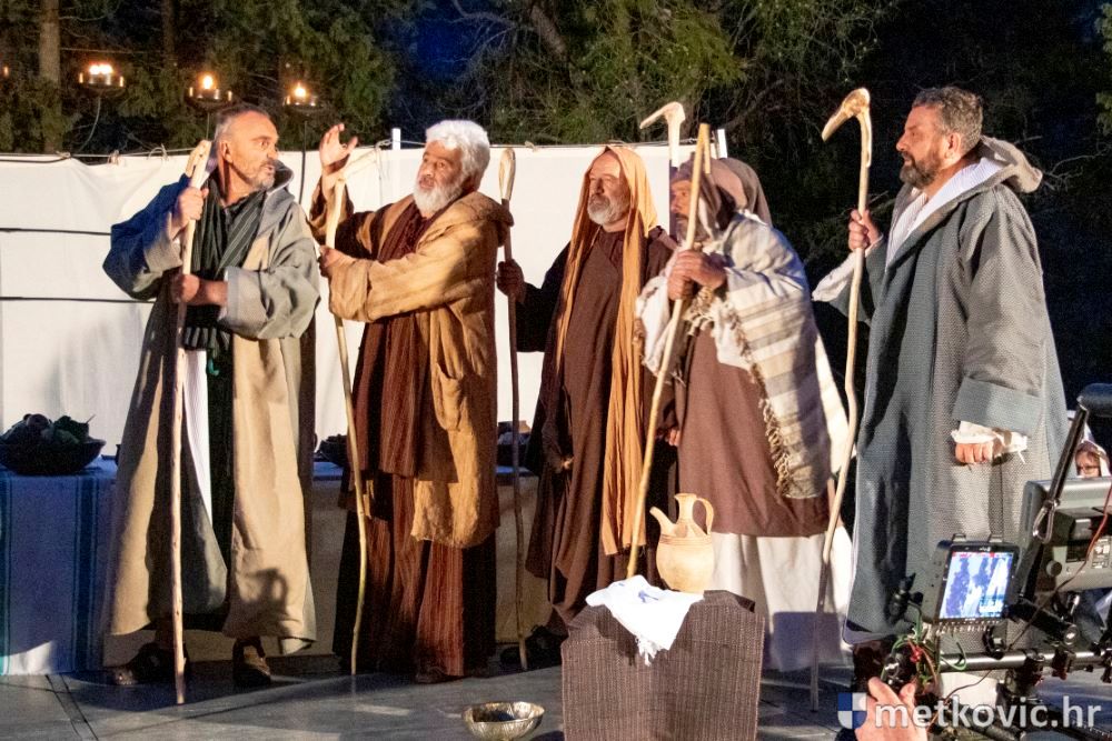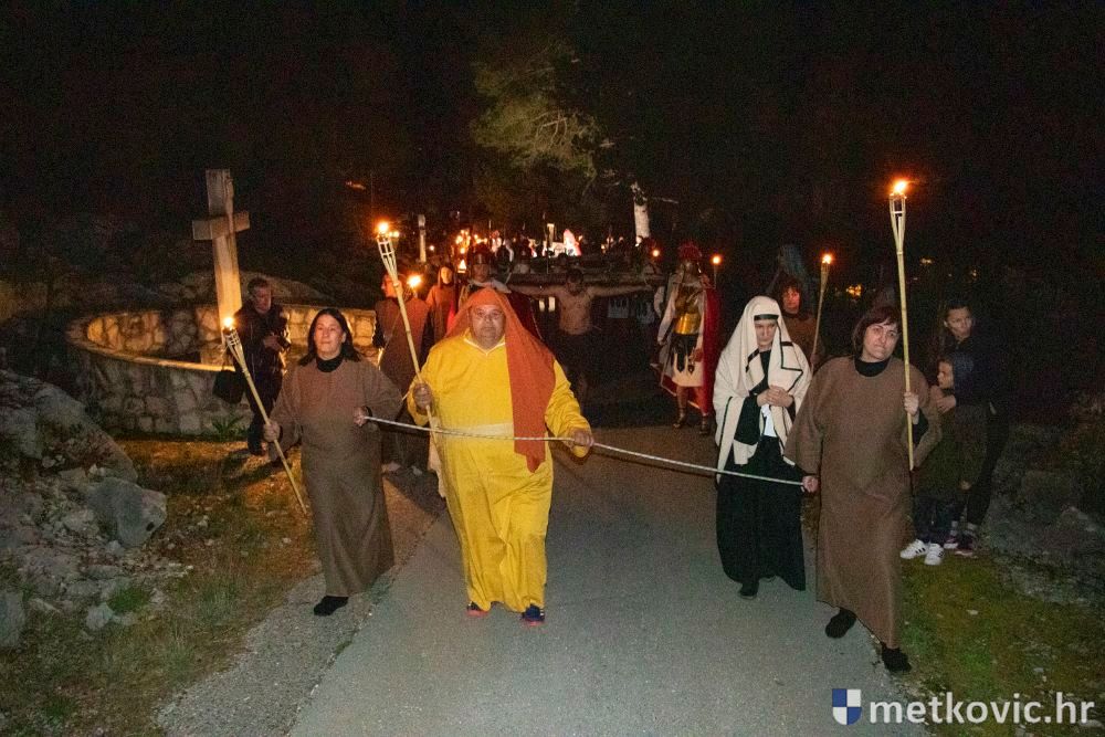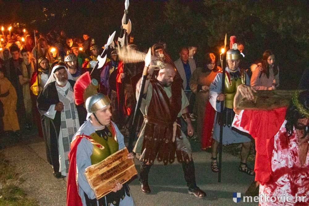 Riječ je o predstavi u kojoj je u režiji Branka Medaka sudjelovalo više od stotinu glumaca amatera i statista te žudije i Zbor Župe sv. Nikole. Isusa Krista tumačio je Marko Jerković, njegovu majku Anđela Brečić, Veroniku Maja Jerković, Poncija Pilata Ivan Menalo, Kajfu Nikola Primorac, velikoga svećenika Anu Tihomir Bandur te Petra i Judu Martin Medak i Igor Ivanković itd.
