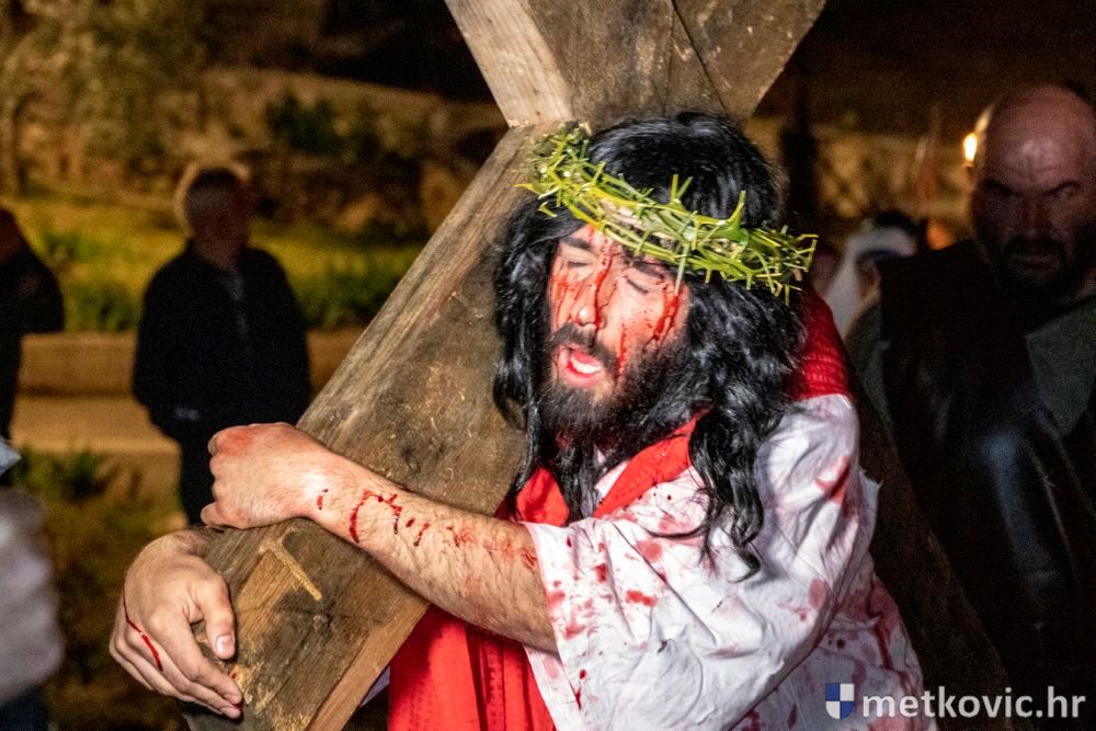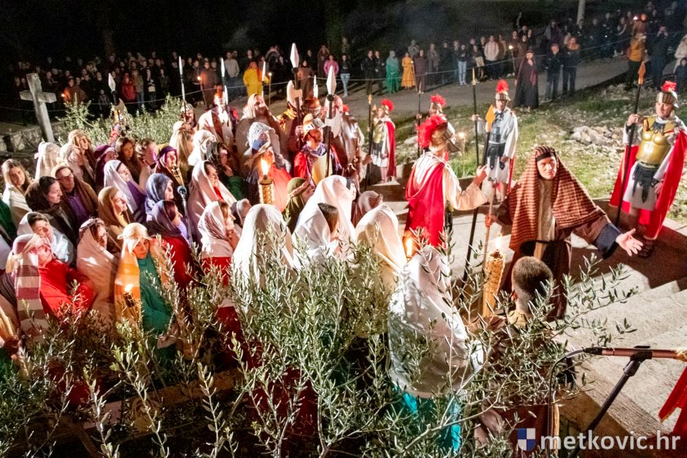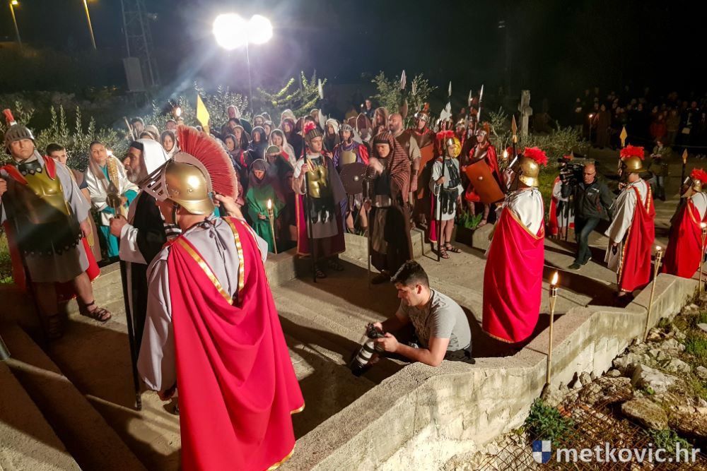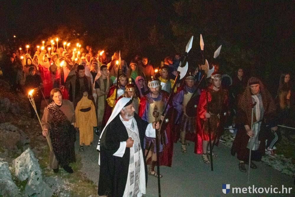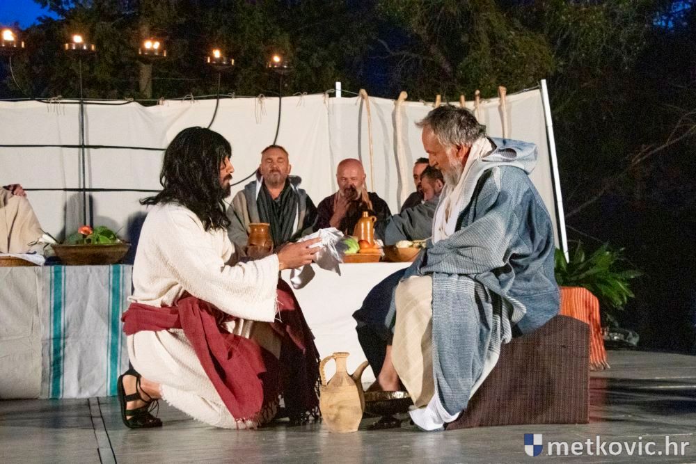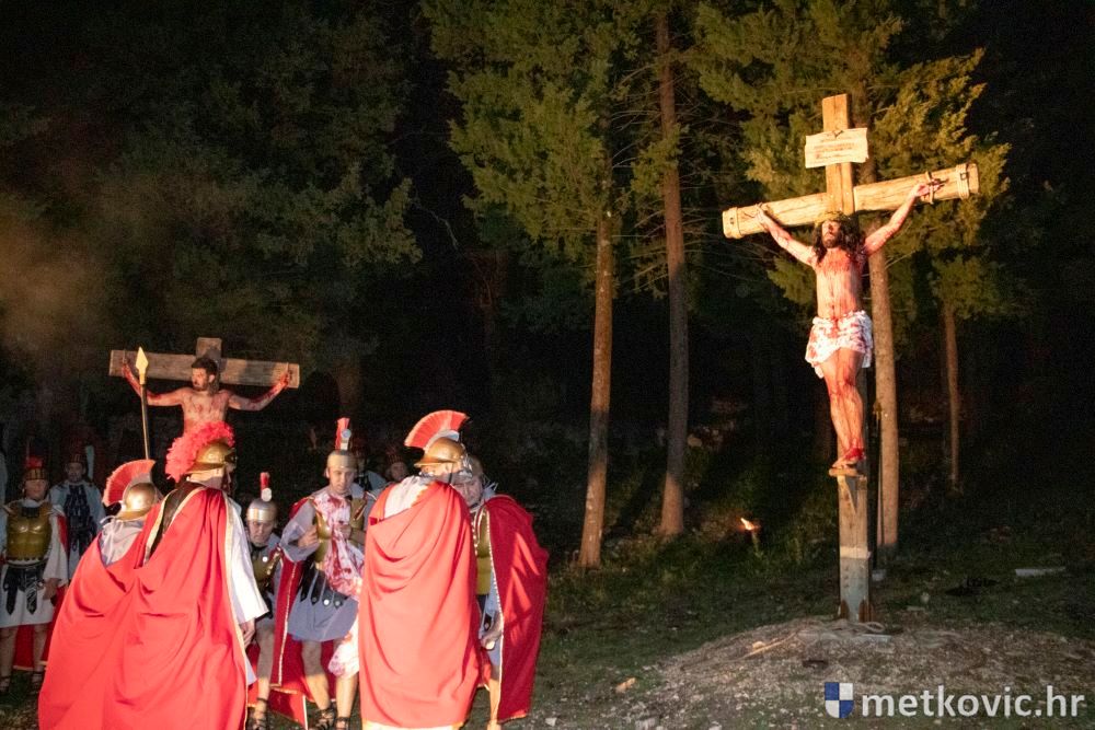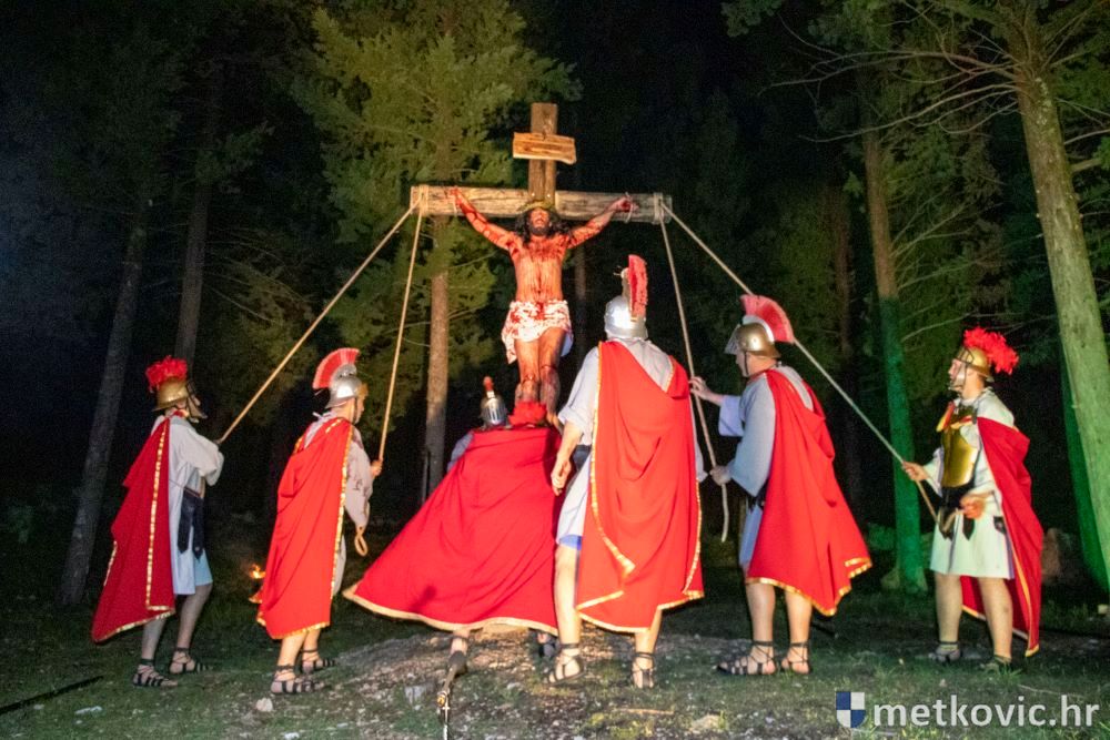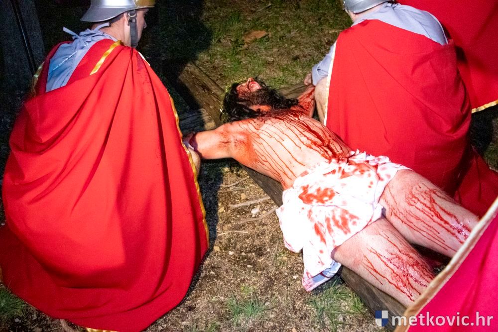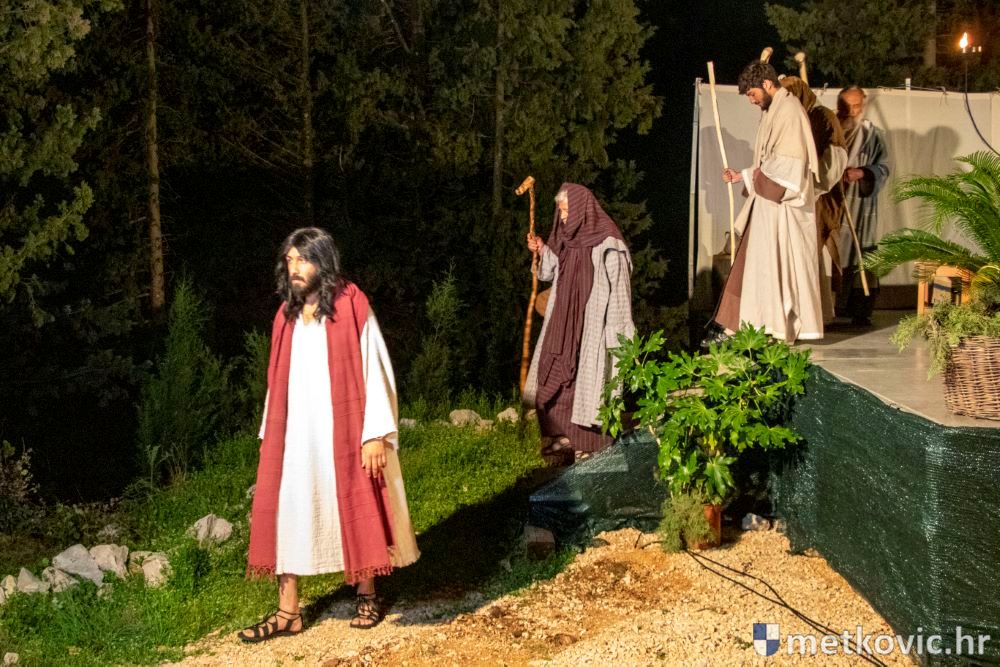 Riječ je o predstavi u kojoj je u režiji Branka Medaka sudjelovalo više od stotinu glumaca amatera i statista te žudije i Zbor Župe sv. Nikole. Isusa Krista tumačio je Marko Jerković, njegovu majku Anđela Brečić, Veroniku Maja Jerković, Poncija Pilata Ivan Menalo, Kajfu Nikola Primorac, velikoga svećenika Anu Tihomir Bandur te Petra i Judu Martin Medak i Igor Ivanković itd.