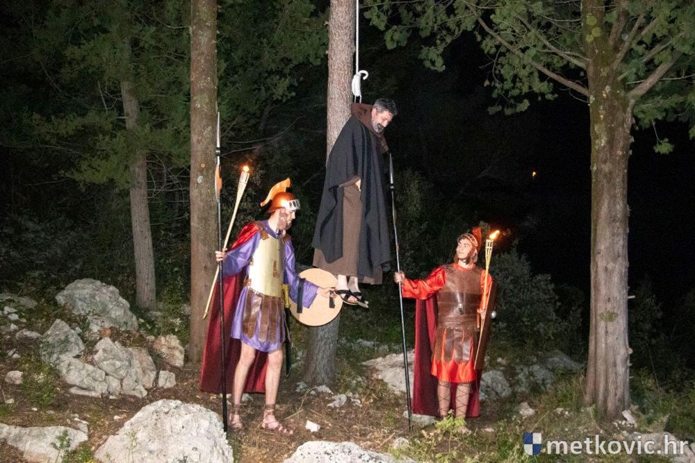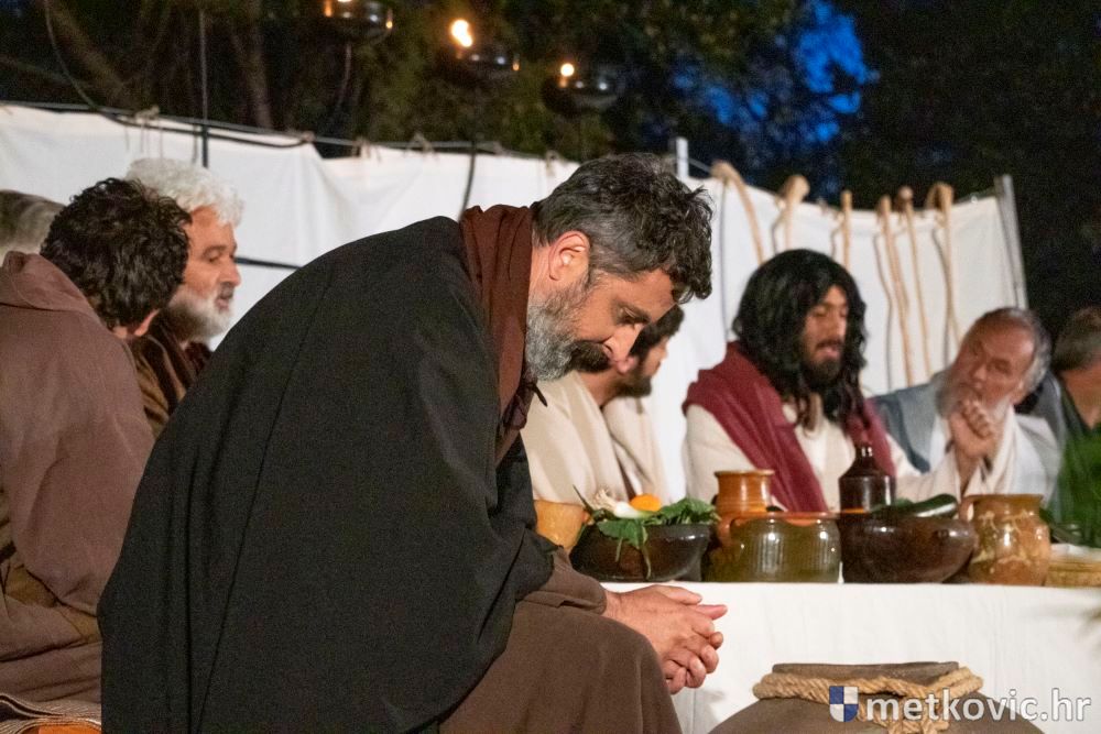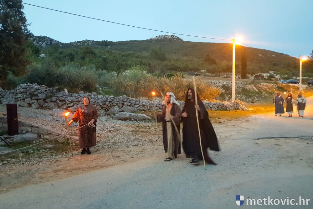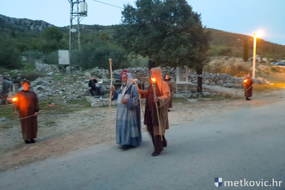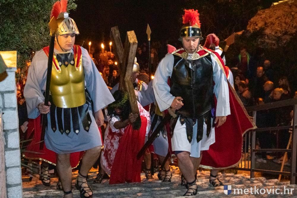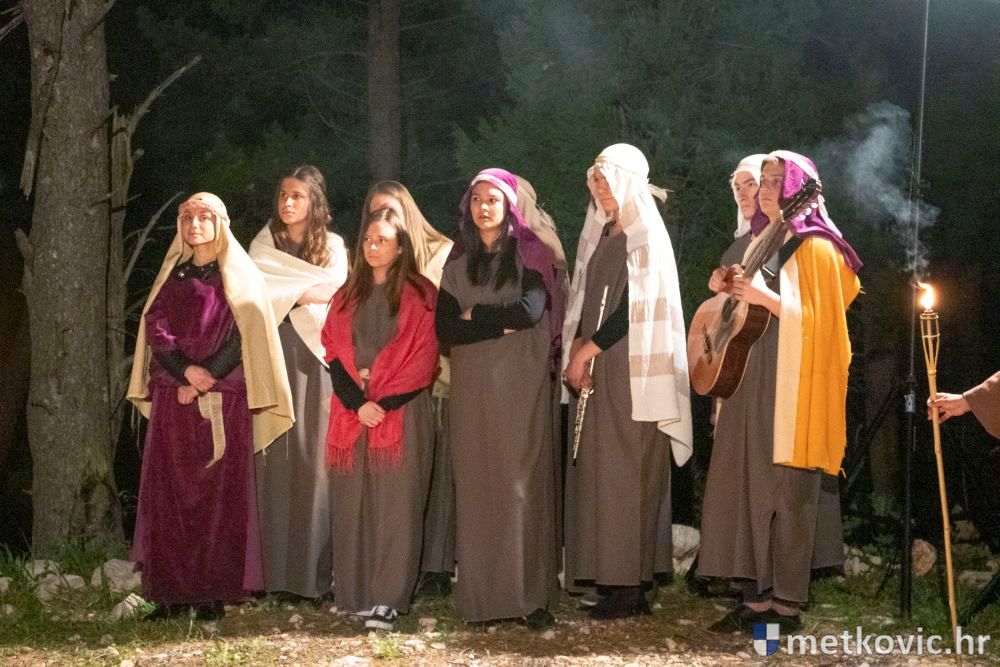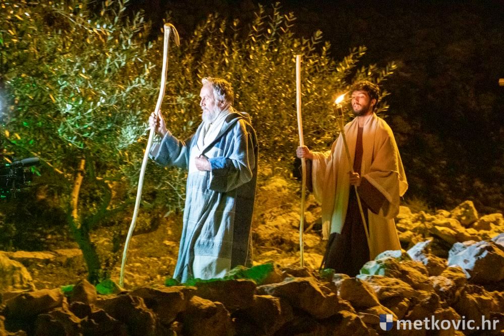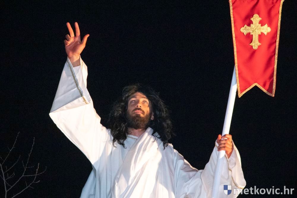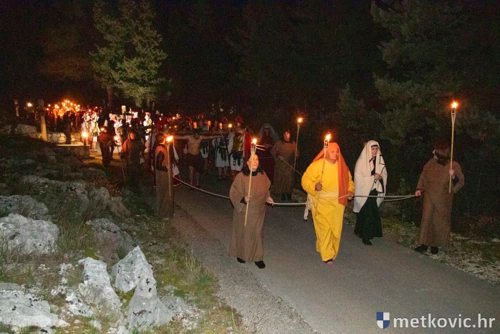 Riječ je o predstavi u kojoj je u režiji Branka Medaka sudjelovalo više od stotinu glumaca amatera i statista te žudije i Zbor Župe sv. Nikole. Isusa Krista tumačio je Marko Jerković, njegovu majku Anđela Brečić, Veroniku Maja Jerković, Poncija Pilata Ivan Menalo, Kajfu Nikola Primorac, velikoga svećenika Anu Tihomir Bandur te Petra i Judu Martin Medak i Igor Ivanković itd.