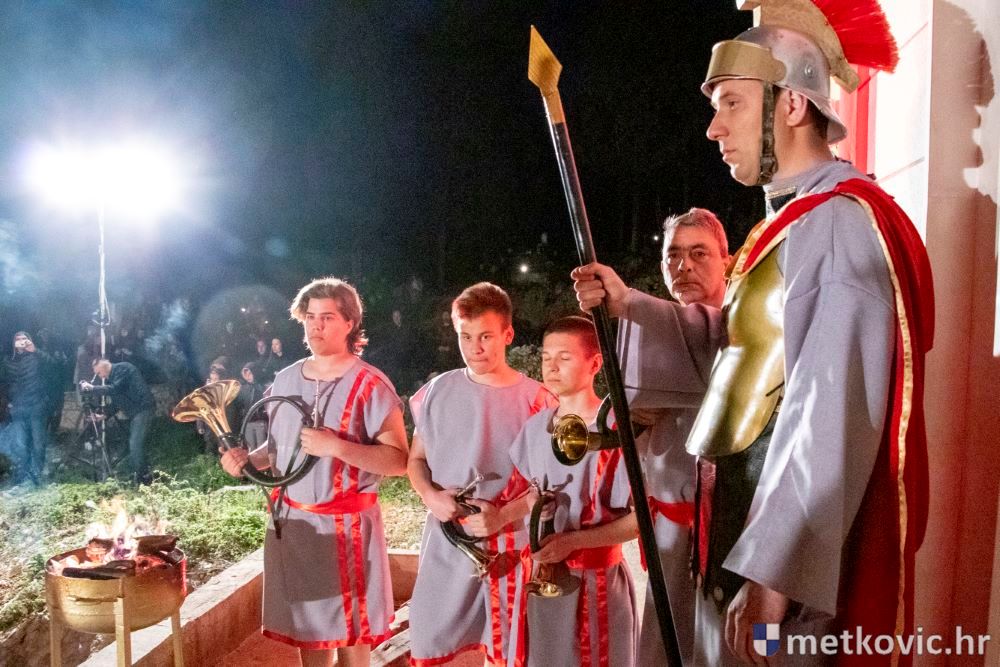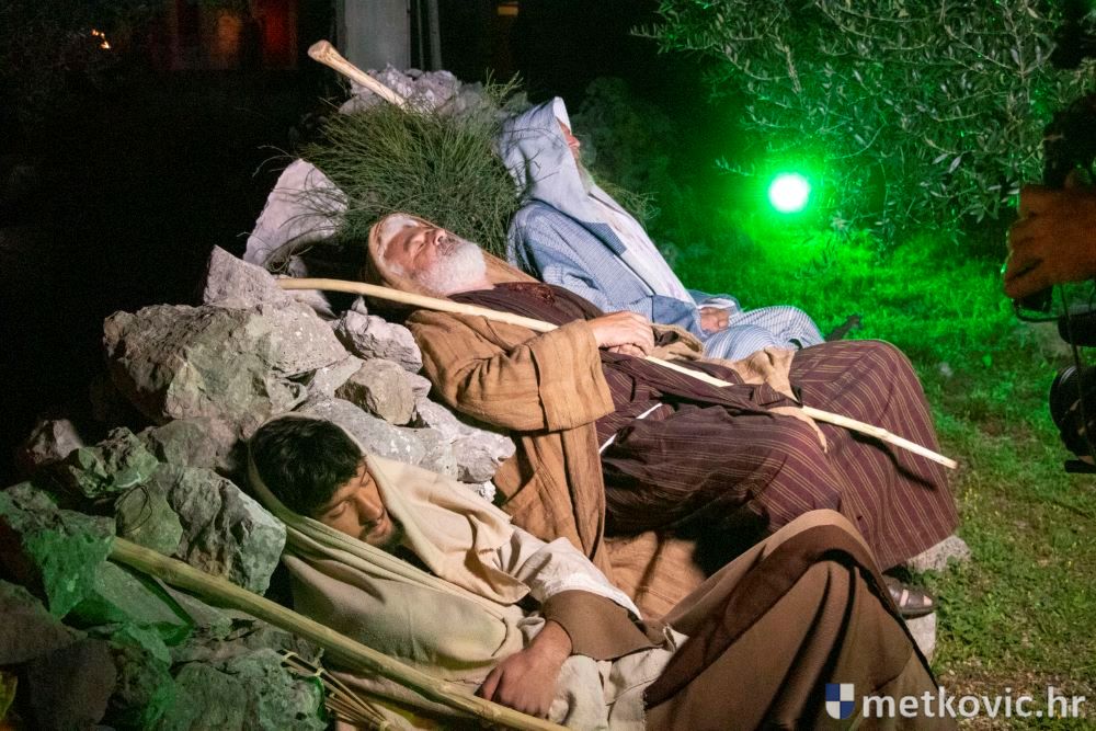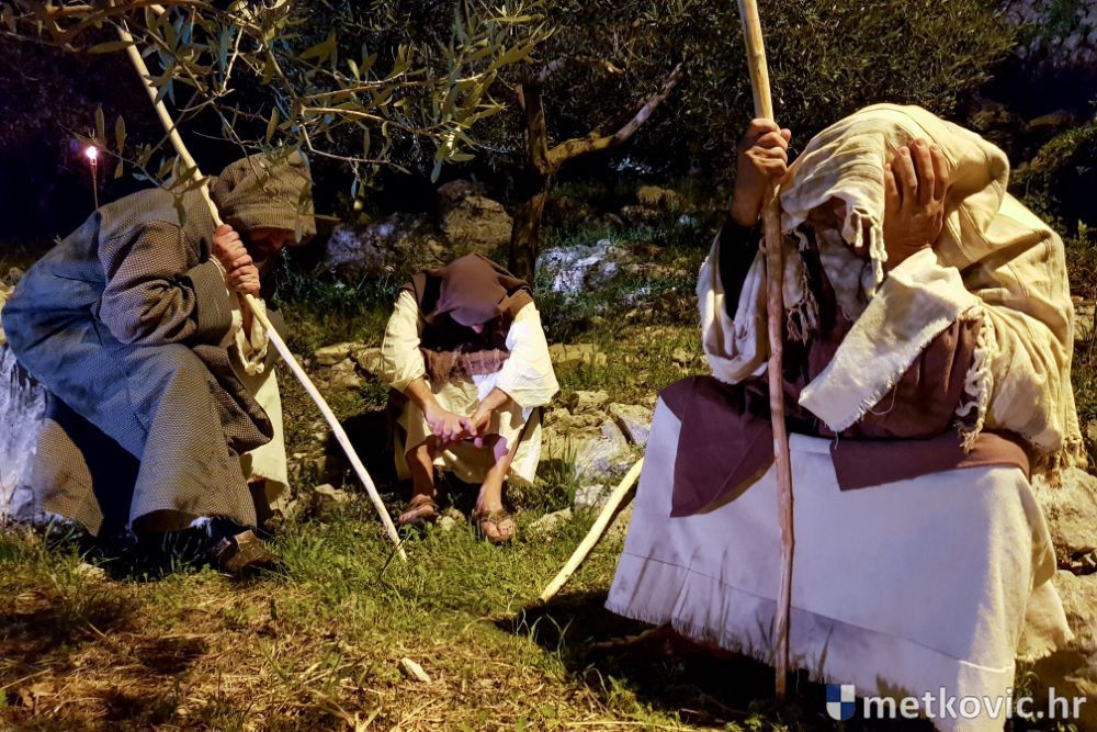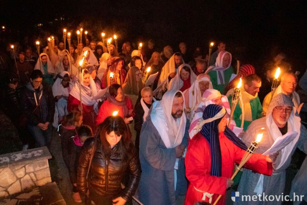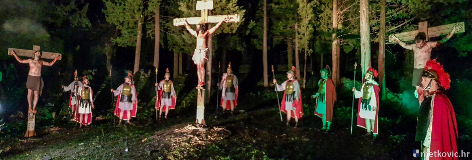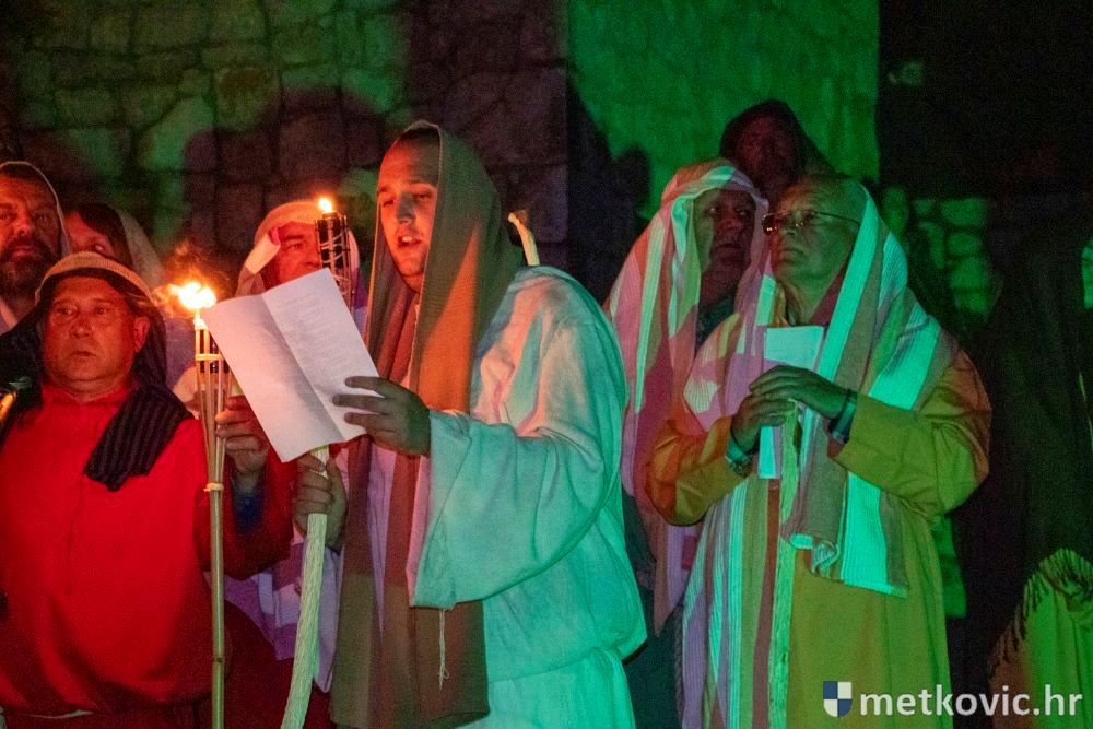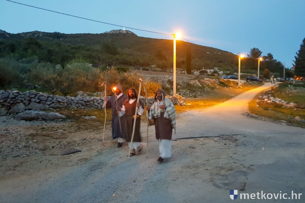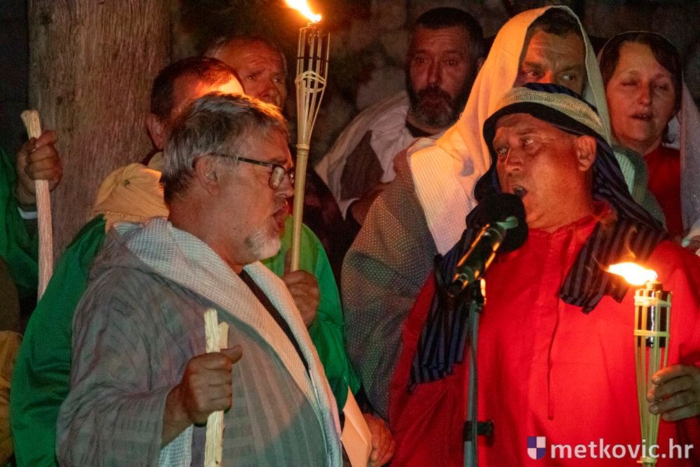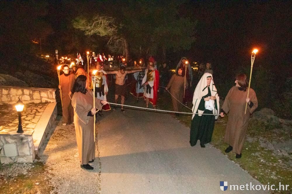 Riječ je o predstavi u kojoj je u režiji Branka Medaka sudjelovalo više od stotinu glumaca amatera i statista te žudije i Zbor Župe sv. Nikole. Isusa Krista tumačio je Marko Jerković, njegovu majku Anđela Brečić, Veroniku Maja Jerković, Poncija Pilata Ivan Menalo, Kajfu Nikola Primorac, velikoga svećenika Anu Tihomir Bandur te Petra i Judu Martin Medak i Igor Ivanković itd.