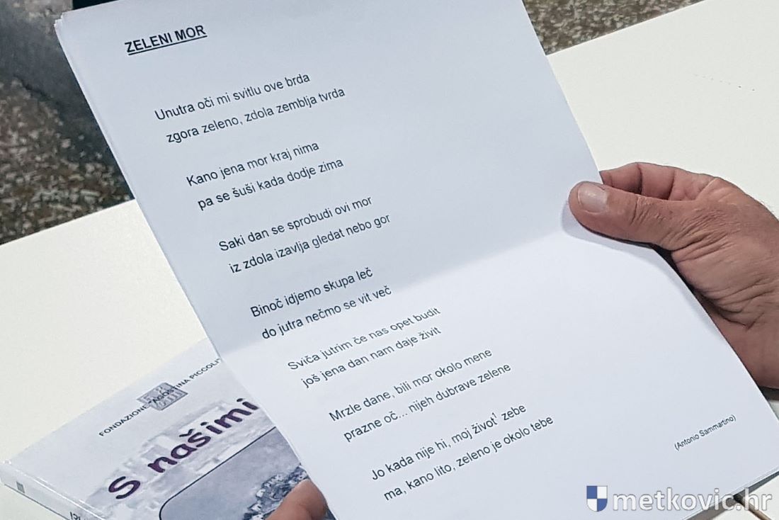U sklopu Susreta u metkovskoj OŠ Stjepana Radića u subotu je održana Književna večer za Metkovce, na kojoj su iz Molisea nastupili Antonio Sammartino, Antonio Piccoli i Leopoldo Lalli; iz Boke kotorske: Adrijan Vuksanović i Zvonimir Deković te s područja Hum-Hercegovina Mile Pešorda i Anita Martinac.