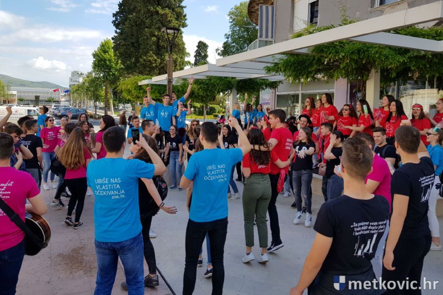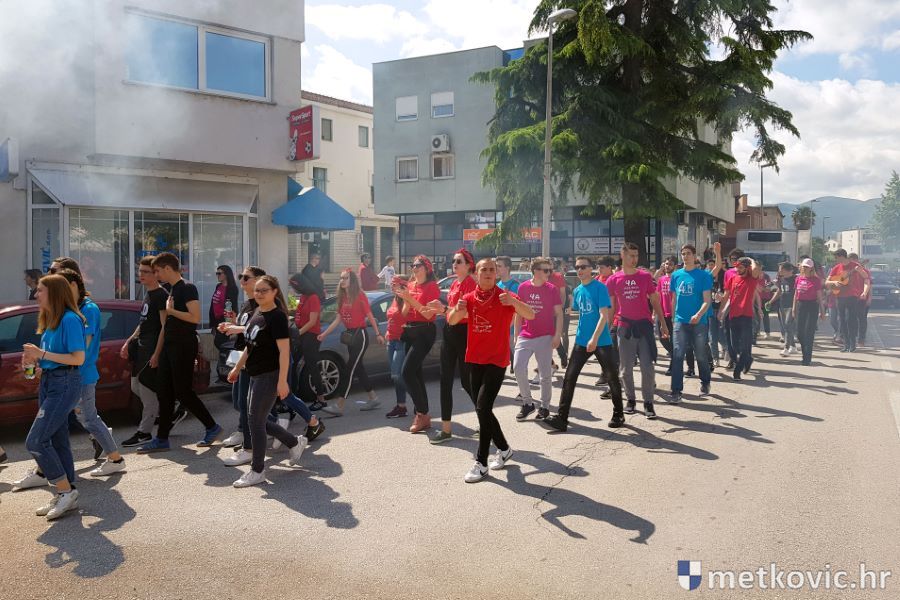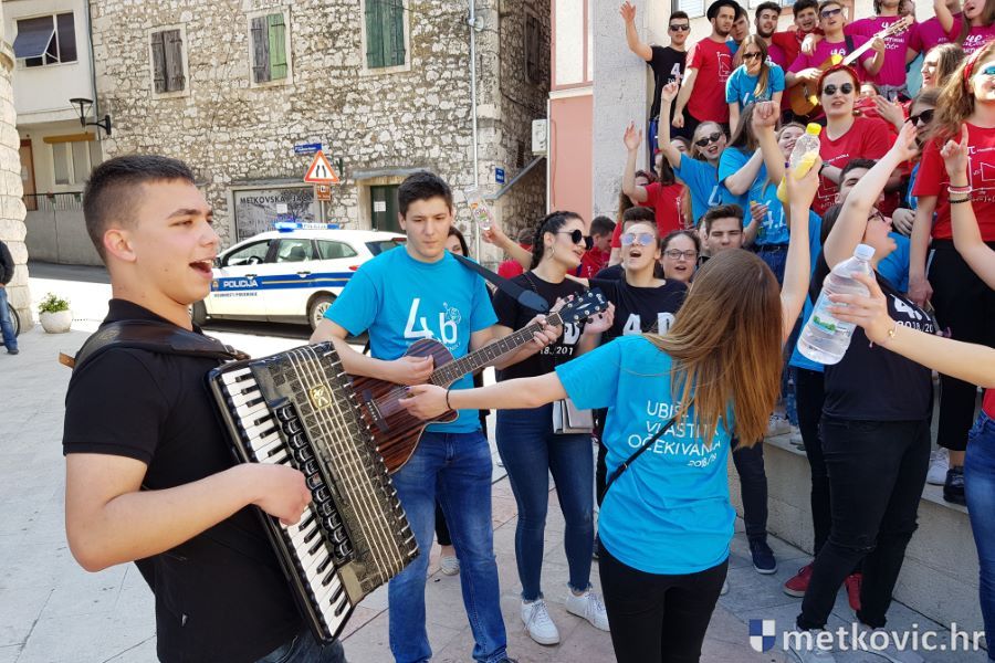 22.5.2019. - Bučno i veselo metkovski maturanti danas slave posljednji dan nastave. Mi smo ih zatekli kako od škole kreću ka Trgu kralja Tomislava. Danas pred podne u Sportskoj ulici plesat će četvorku u sklopu plesnog projekta Maturantska parada 2019. – Quardilla dance parade 2019.
