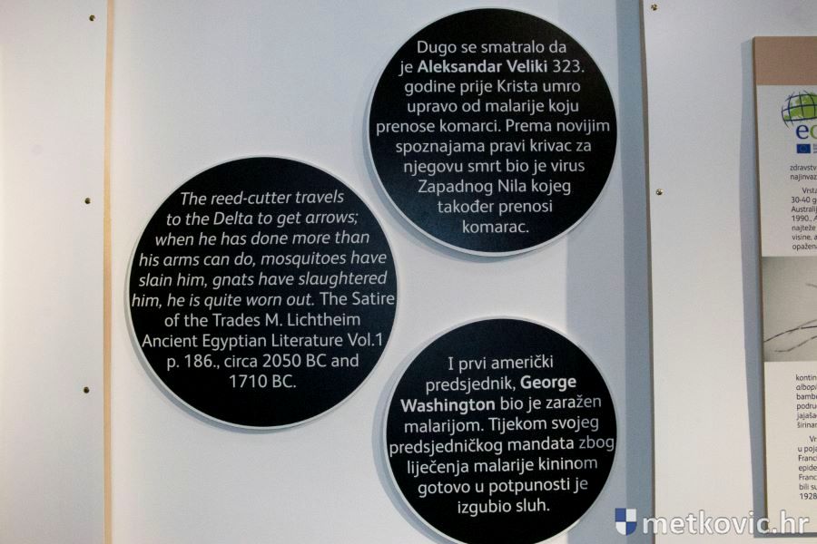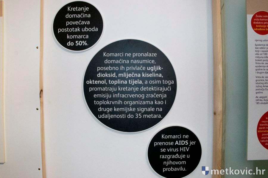 Tema jučer otvorene izložbe u PMM-u jesu komarci, a sama izložba nosi znakovit naziv – 'Komarci - najsmrtonosnije životinje na Zemlji'. Kako stoji u katalogu izložbe, autori dr. sc. Iva Mihoci i Petar Crnčan sa suradnicima dr. sc. Anom Klobučar i dr. sc. Nediljkom Landekom prikazali su vrijedne zbirke komaraca u Republici Hrvatskoj, važne biološke karakteristike ove značajne vektorske skupine, kao i životni ciklus komarca u akvariju, a kako bi se posjetitelji upoznali s morfologijom razvojnih stadija. Izložbom se prezentiraju invazivne vrste komaraca te načini njihovog unosa kao i snažan vektorski potencijal. Prikazuju se i brojne metode suzbijanja komaraca u Hrvatskoj i to u različitim stadijima. Izložba je u prezentacijskom smislu obogaćena i tehnologijom hologramskog prikaza, a koji se pokazao kao izvrsna metoda vizualizacije ovih sitnih organizama.